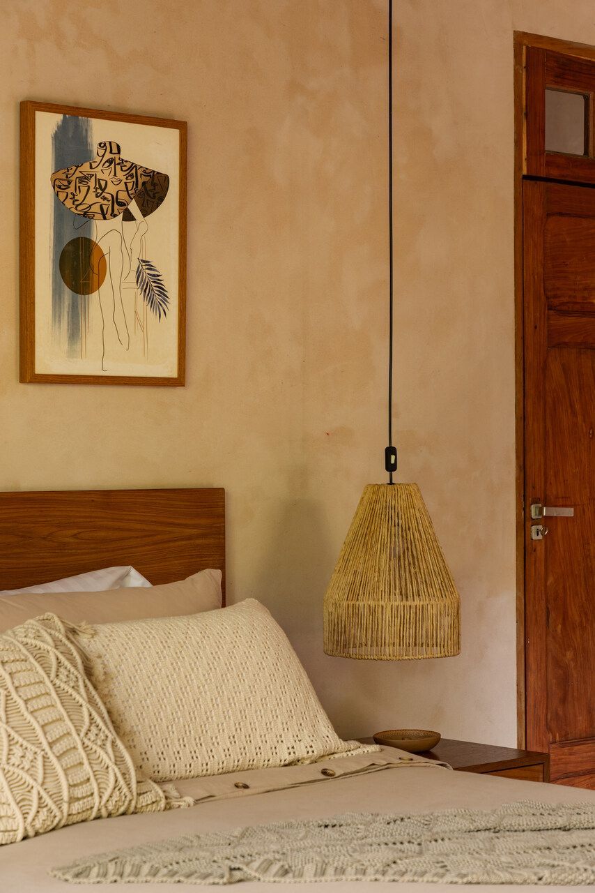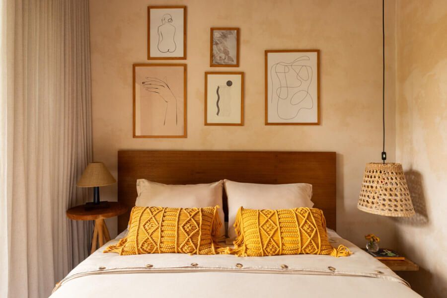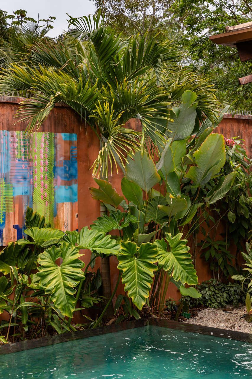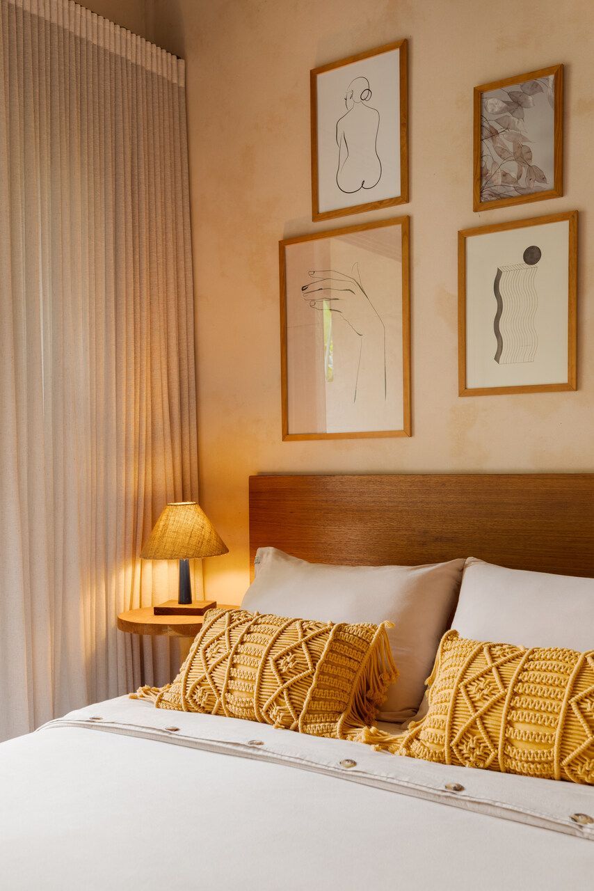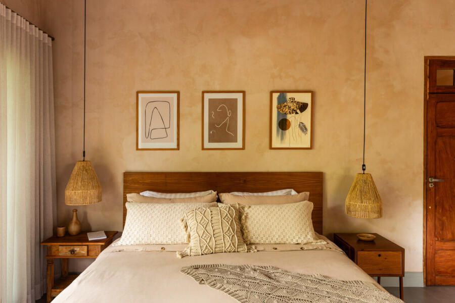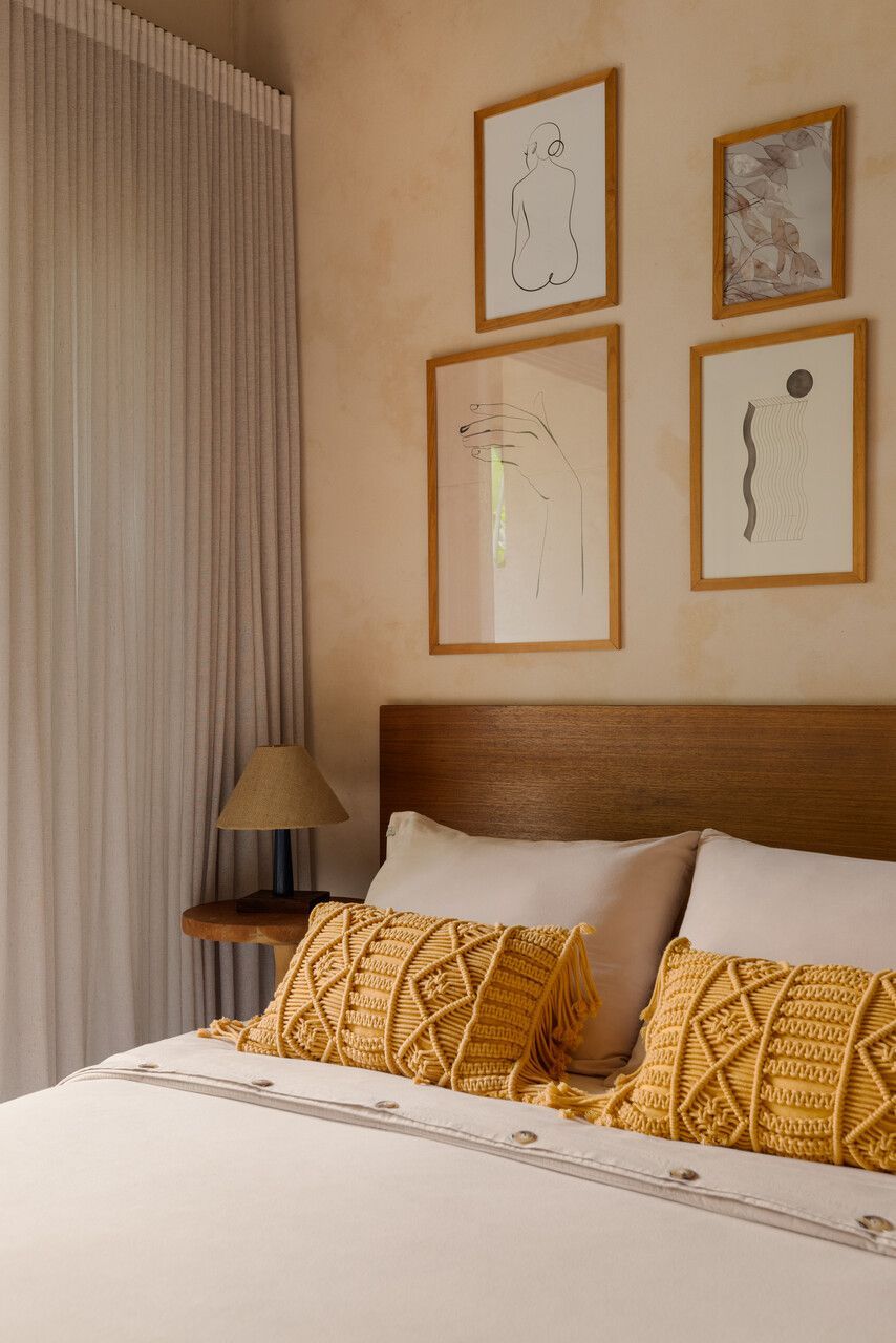 “A residência abriga uma curadoria diversa de artistas contemporâneos, distribuídos entre hall, salas, suítes e área externa, reforçando o caráter quase expositivo da casa. Entre eles, destacam-se obras de Carlito Colhado, Iago Bezerra e Gin Arts, além de peças provenientes das galerias Obrah e Tato.”