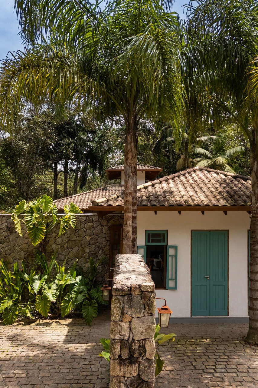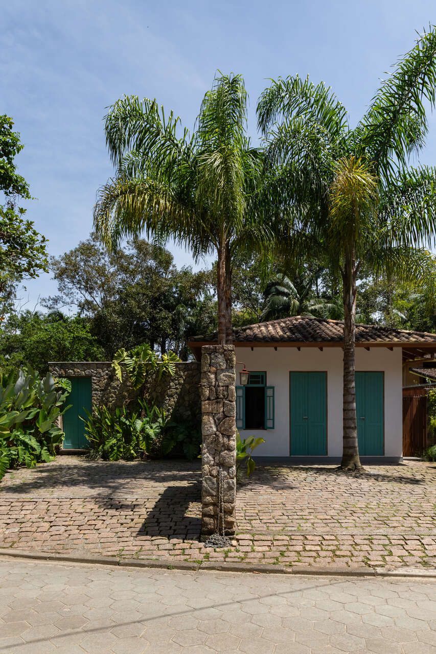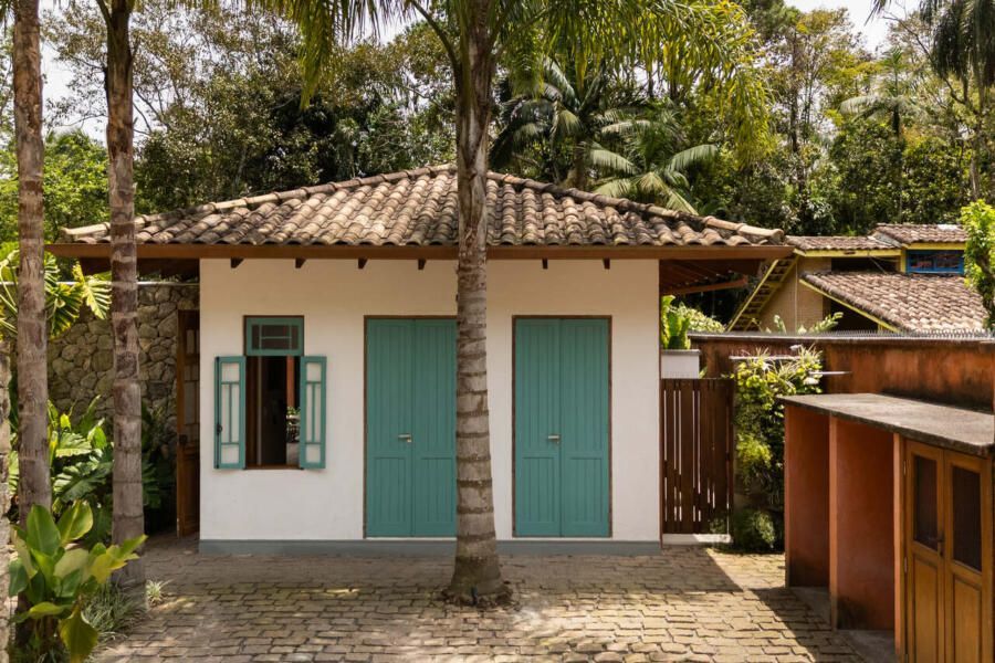 Uma volumetria branca de telhados cerâmicos de quatro águas, marcada pela rusticidade da pedra moledo e o charme de esquadrias de demolição em tons de verde-água: assim se apresenta a Casa Caiçara. Localizada em um terreno envolto pela mata nativa, a residência de 180m² revela-se discretamente atrás de um recuo ajardinado, propondo uma arquitetura térrea que prioriza a ventilação cruzada e a luz natural. O projeto, assinado pelo Studio Carlito & Renata Pascucci, foi concebido para um casal de empresários que buscava um refúgio com a essência dos antigos vilarejos costeiros, unindo simplicidade e inteligência programática.