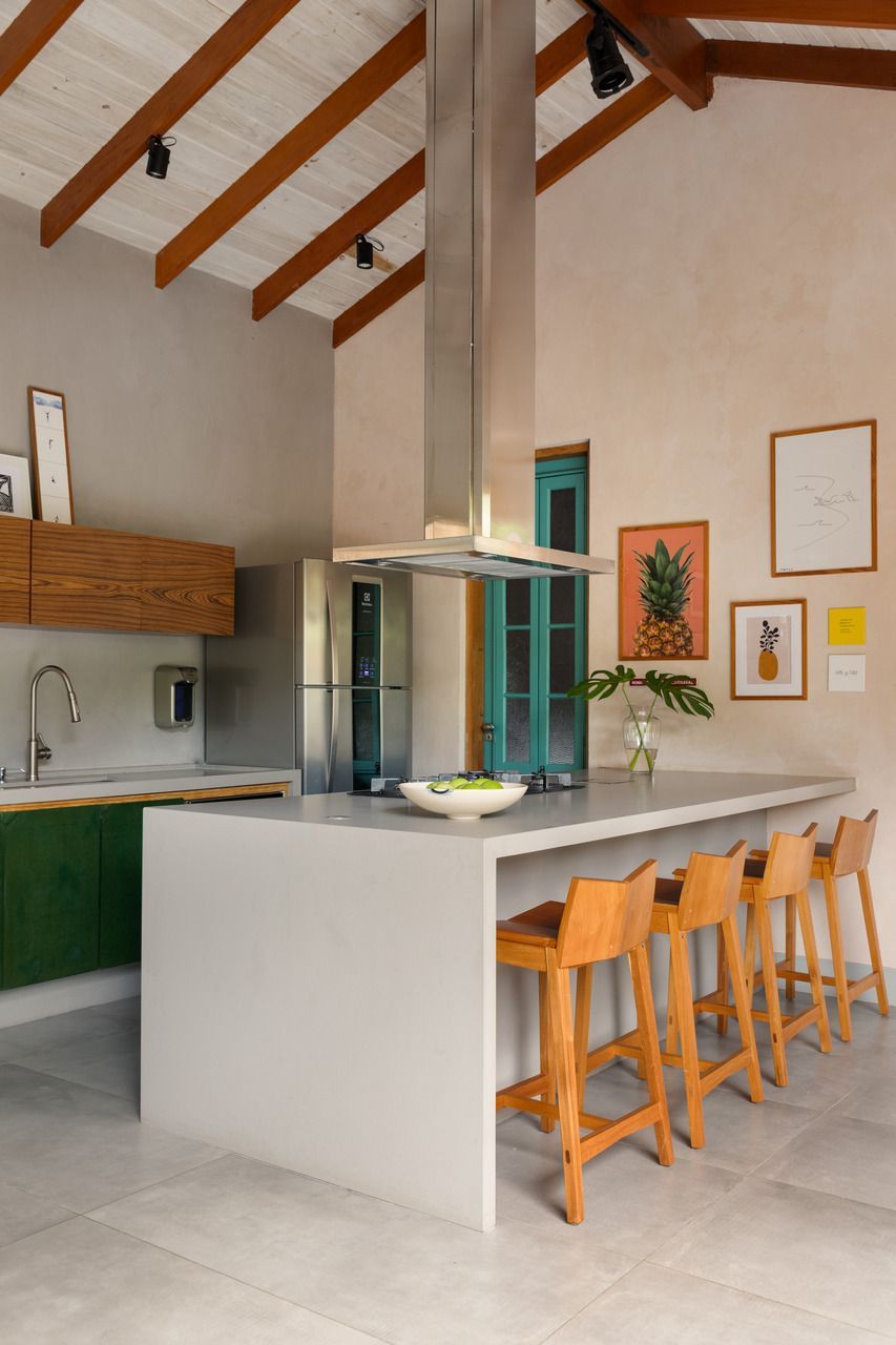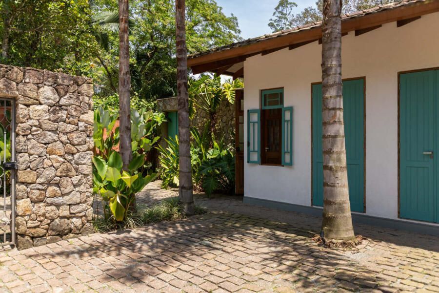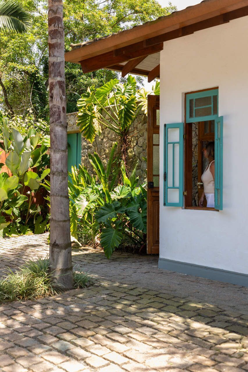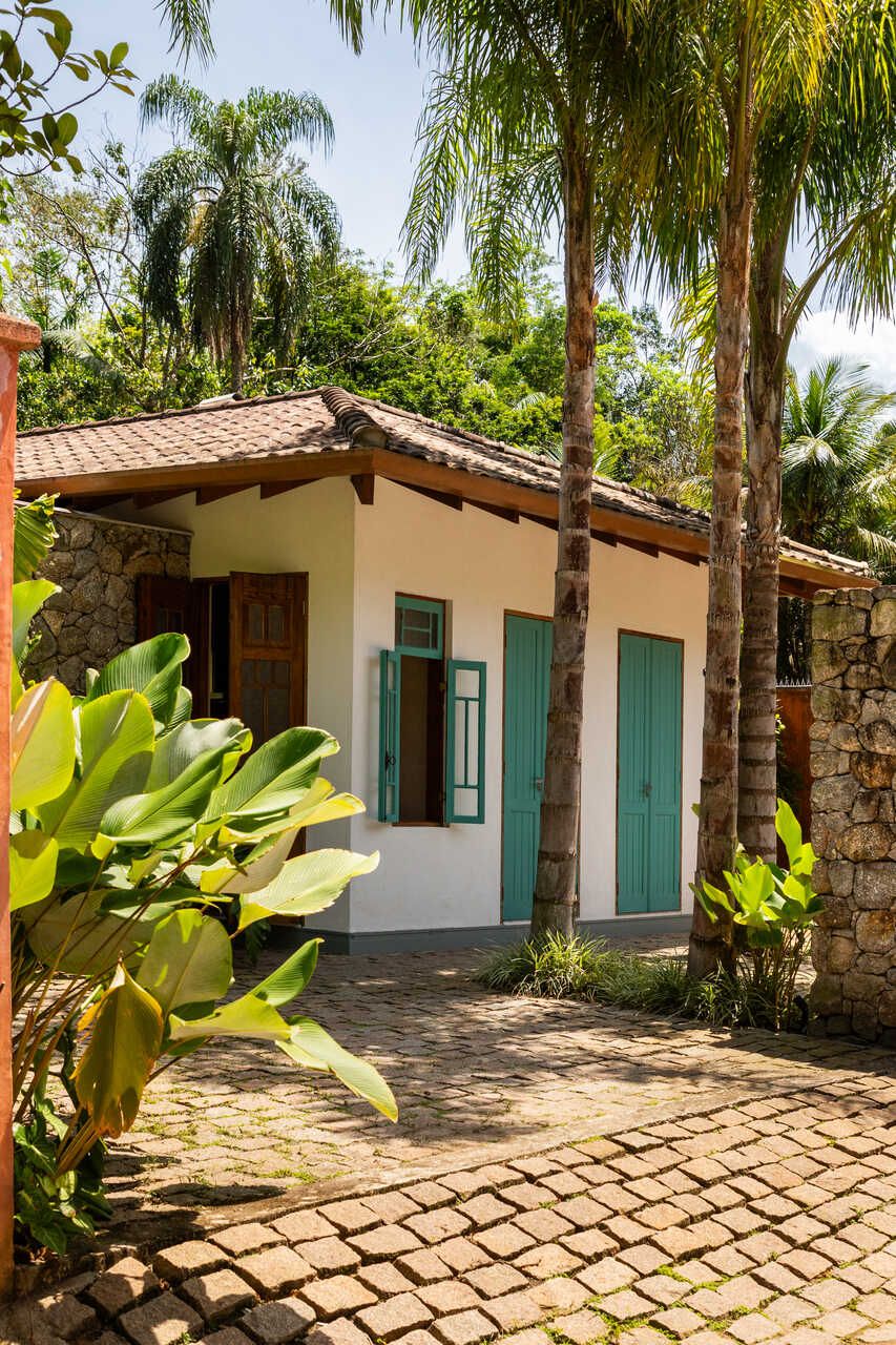 Uma volumetria branca de telhados cerâmicos de quatro águas, marcada pela rusticidade da pedra moledo e o charme de esquadrias de demolição em tons de verde-água: assim se apresenta a Casa Caiçara. Localizada em um terreno envolto pela mata nativa, a residência de 180m² revela-se discretamente atrás de um recuo ajardinado, propondo uma arquitetura térrea que prioriza a ventilação cruzada e a luz natural. O projeto, assinado pelo Studio Carlito & Renata Pascucci, foi concebido para um casal de empresários que buscava um refúgio com a essência dos antigos vilarejos costeiros, unindo simplicidade e inteligência programática.