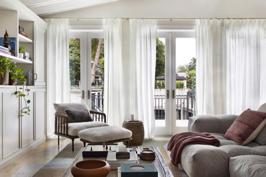 Voltada para um canal que desemboca no mar, a casa reflete o cotidiano dos moradores, que utilizam com frequência o barco da família e compartilham o gosto pela pesca. Essa conexão direta com a água foi o ponto de partida para o conceito do projeto, guiado por uma leitura atual do coastal style, menos literal, mais sofisticada. A proposta buscou criar ambientes aconchegantes, descontraídos e funcionais, traduzindo um estilo casual com pegada contemporânea, adequado tanto à rotina familiar quanto aos momentos de receber. Antes mesmo da aprovação da ampliação prevista para um dos lados da casa, os proprietários encomendaram a renovação de alguns ambientes internos estratégicos. Nesta primeira fase, Daniela Saliba reformou o family room, o home office que também funciona como quarto de hóspedes, a suíte master e promoveu uma repaginação na cozinha.