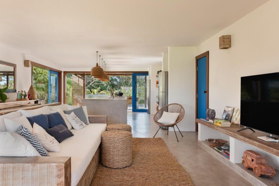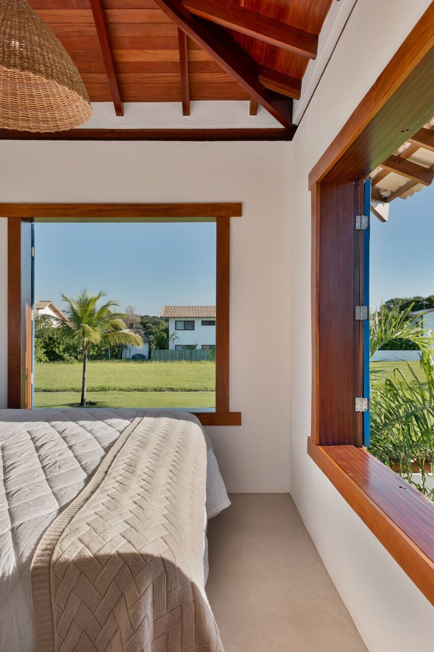 Localizada em um condomínio entre Trancoso e Caraíva, no sul da Bahia, esta casa de veraneio foi desenvolvida pelo W.A.M.V. Arquitetura para atender aos desejos de um casal na faixa dos 40 anos que buscava um refúgio prático, confortável e acolhedor. Com um terreno de 230m² e área construída de pouco mais de 120m², o projeto foi idealizado para ser funcional, com manutenção simples, e ao mesmo tempo servir tanto para o uso próprio quanto para aluguel eventual.