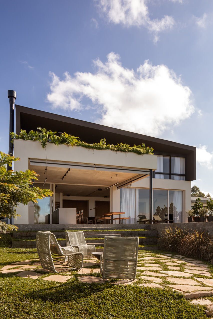 Assinada pelo escritório Arkitito Arquitetura, esta casa no interior de São Paulo nasce do encontro entre desejo de praticidade, afeto e uma leitura sensível do terreno. Implantada em um lote generoso de 1.450 m² em declive, a residência de 670m², coroada por um rooftop com vista aberta para o campo, revela uma arquitetura contemporânea, descomplicada e profundamente conectada ao cotidiano de seus moradores.