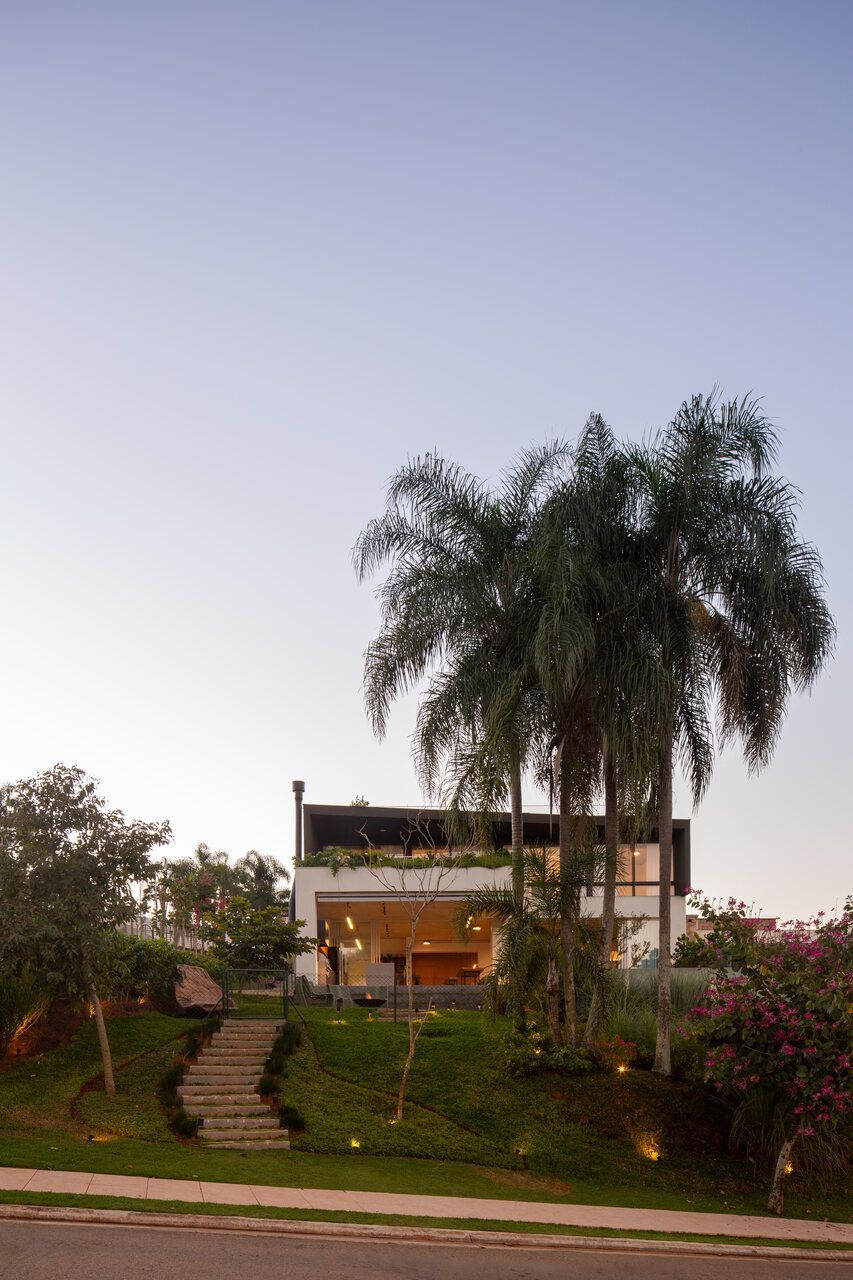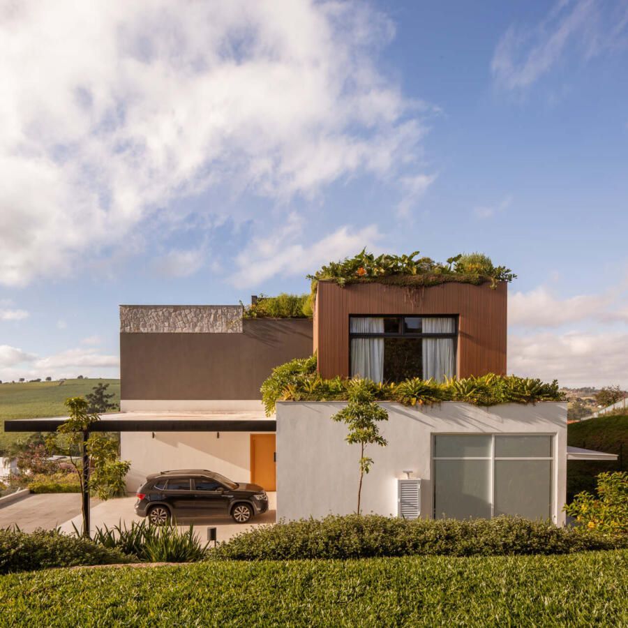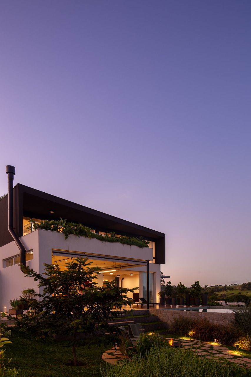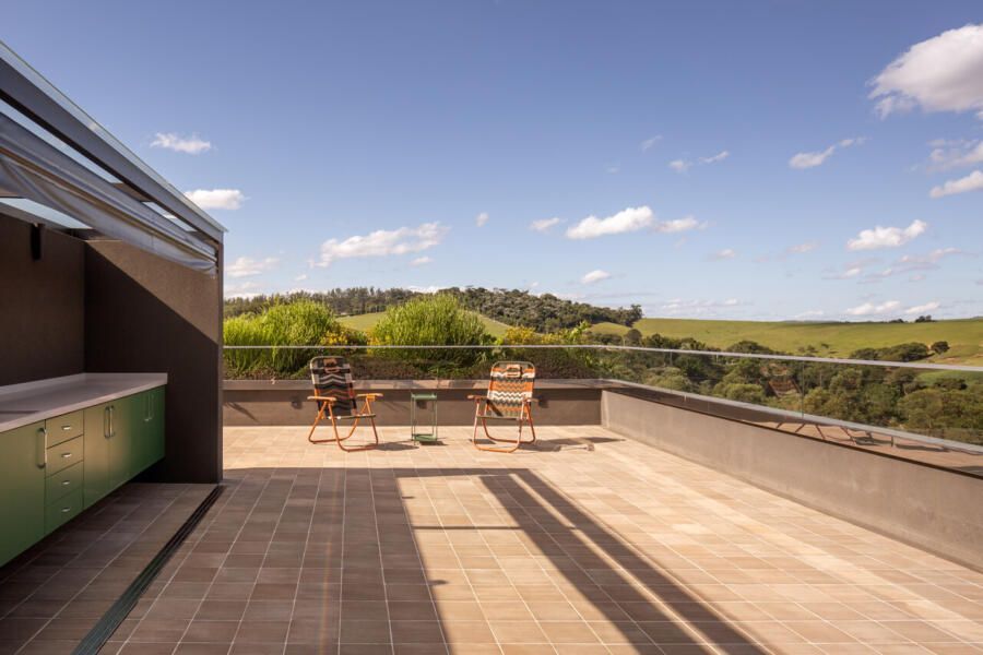 O paisagismo, assinado por Olivia Uliano, atua como extensão da arquitetura, costurando os volumes construídos com o entorno natural do condomínio e reforçando a sensação de refúgio. No rooftop, a vista aberta para o campo sintetiza o espírito do projeto: uma casa feita para viver, permanecer e compartilhar.