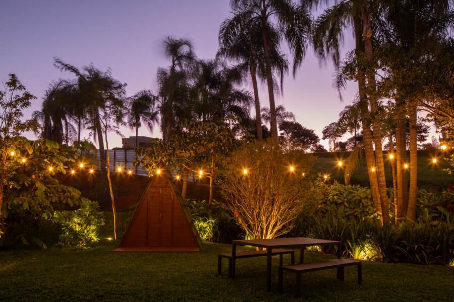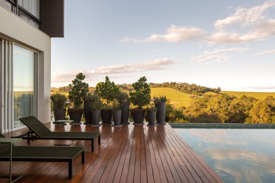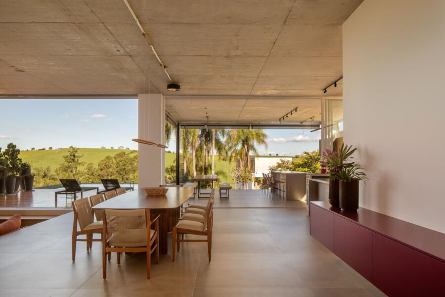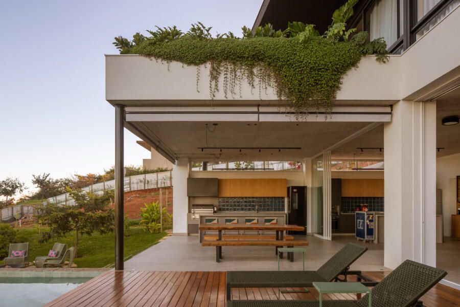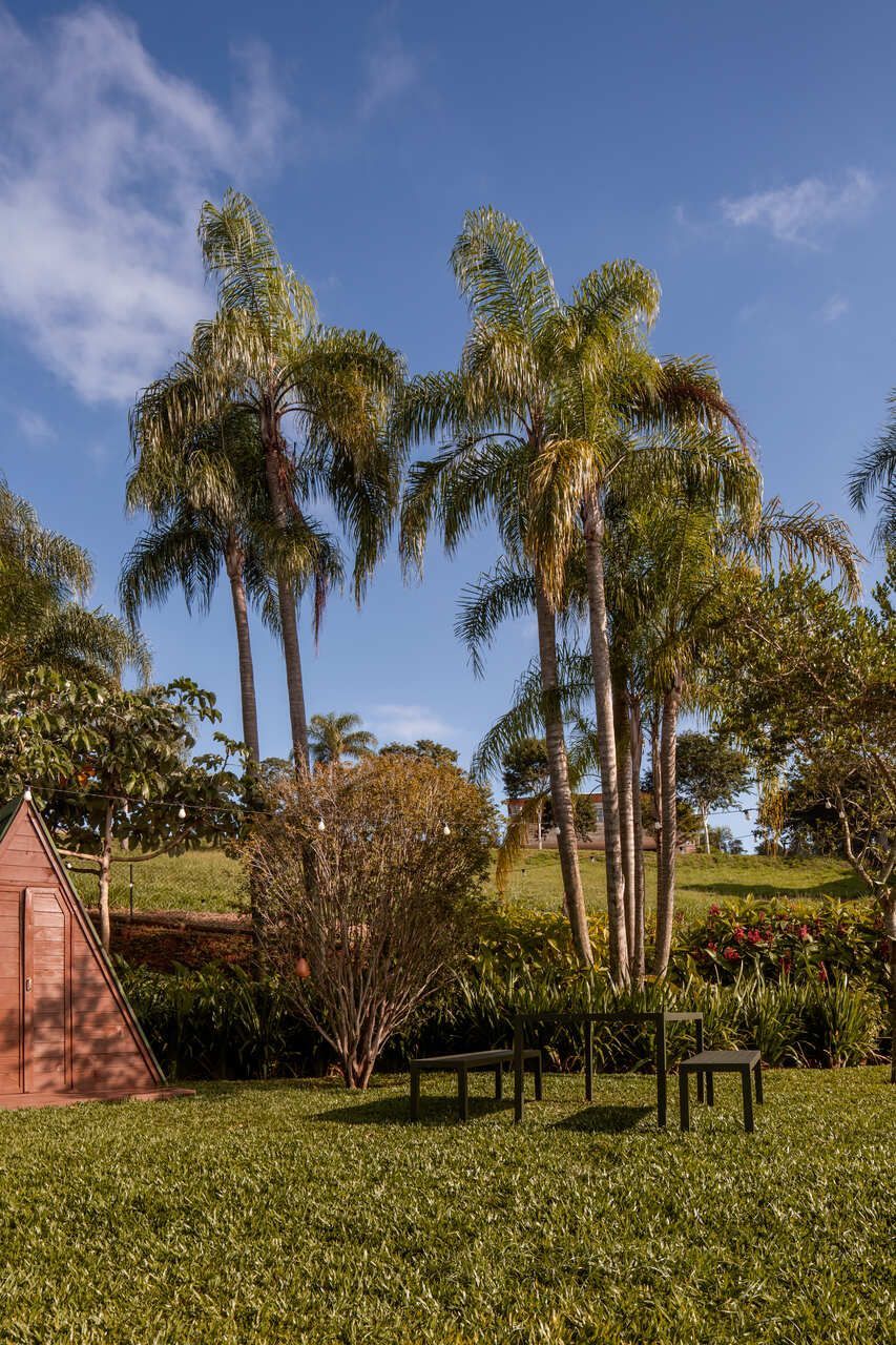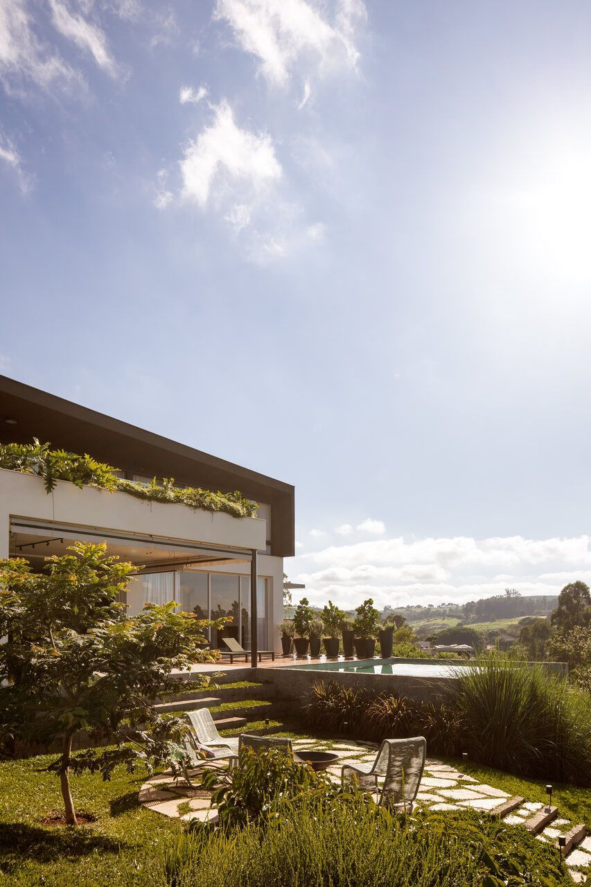 O paisagismo, assinado por Olivia Uliano, atua como extensão da arquitetura, costurando os volumes construídos com o entorno natural do condomínio e reforçando a sensação de refúgio. No rooftop, a vista aberta para o campo sintetiza o espírito do projeto: uma casa feita para viver, permanecer e compartilhar.
