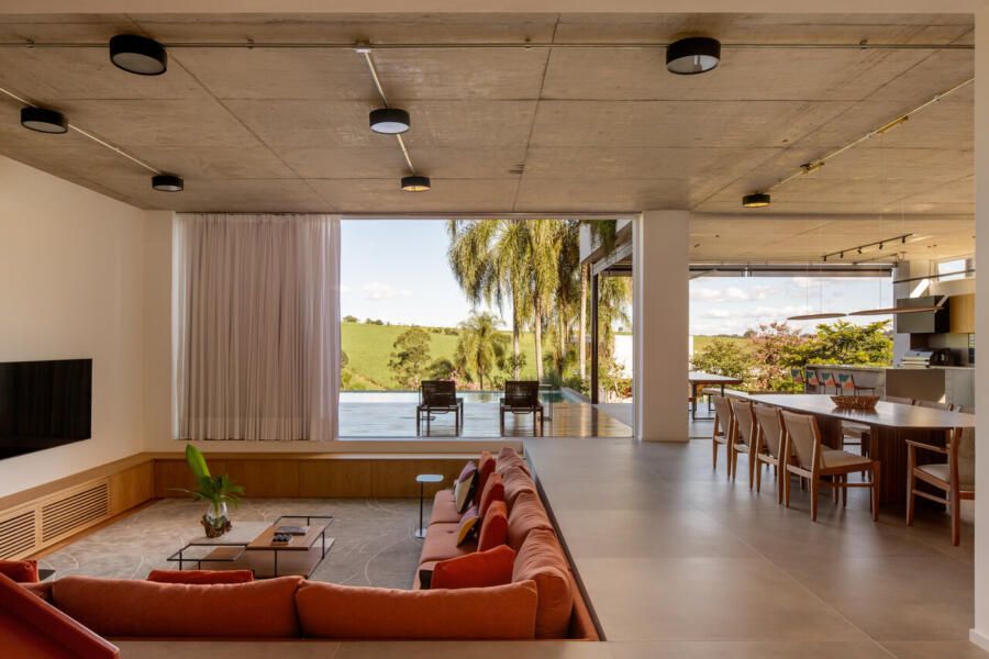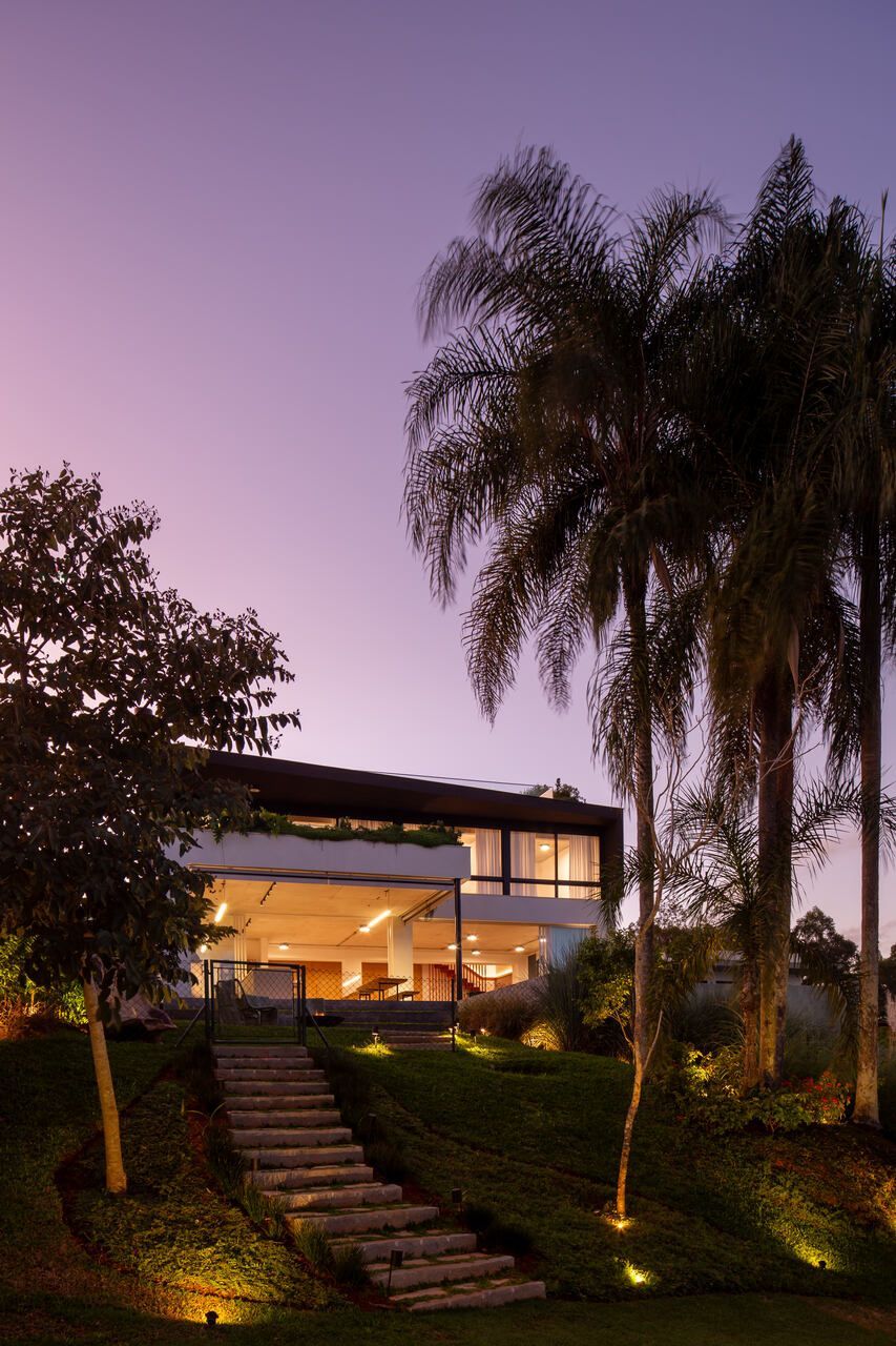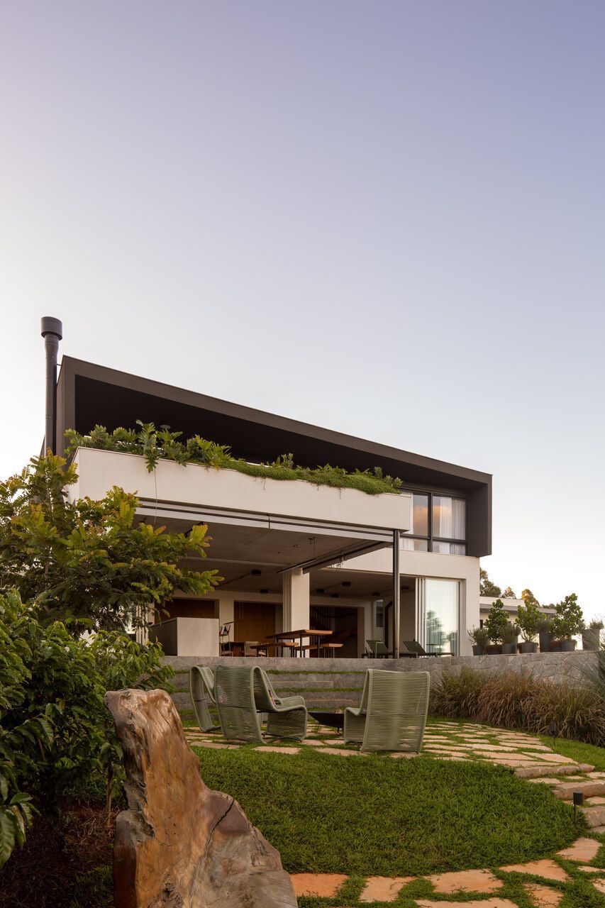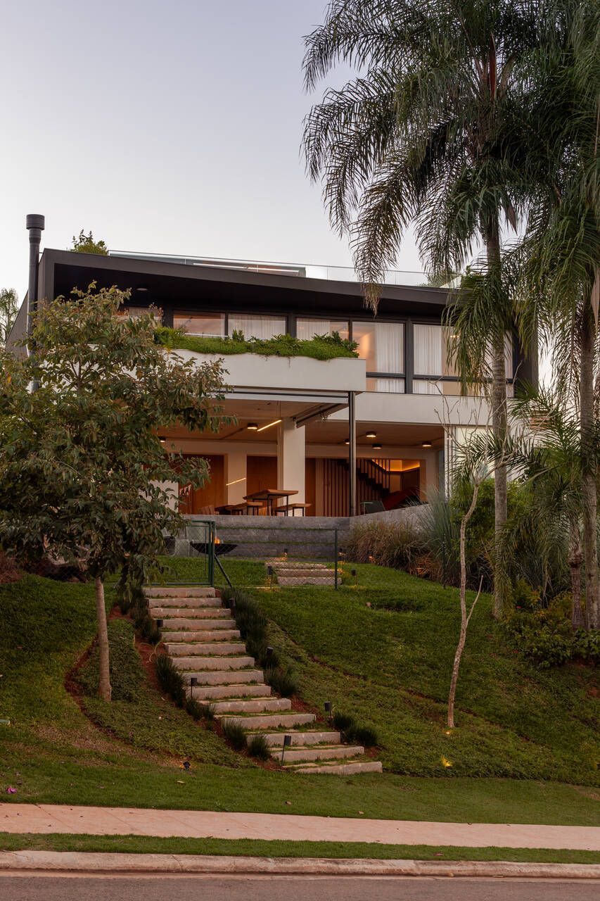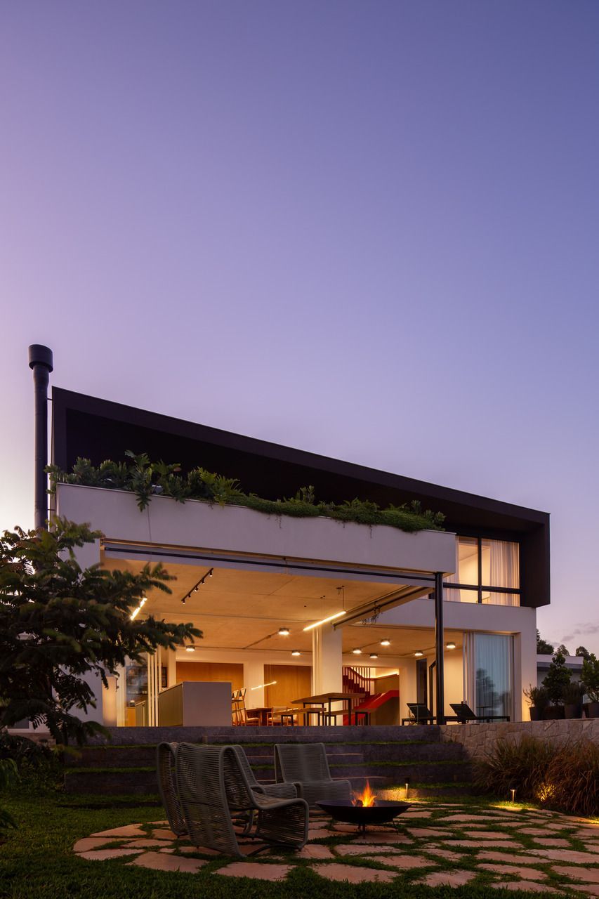 Assinada pelo escritório Arkitito Arquitetura, esta casa no interior de São Paulo nasce do encontro entre desejo de praticidade, afeto e uma leitura sensível do terreno. Implantada em um lote generoso de 1.450 m² em declive, a residência de 670m², coroada por um rooftop com vista aberta para o campo, revela uma arquitetura contemporânea, descomplicada e profundamente conectada ao cotidiano de seus moradores.