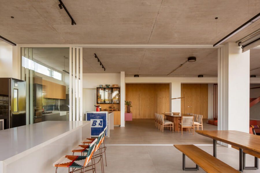 Pensada para um casal com dois filhos adolescentes, a casa parte de um pedido muito claro: criar um espaço integrado, amplo e divertido, onde receber amigos fosse tão natural quanto descansar em família. A convivência sempre foi um valor central para os proprietários, algo que guiou decisões desde o primeiro traço até a escolha dos materiais. O encontro com a Arkitito aconteceu depois de uma pesquisa atenta no Instagram e na Galeria da Arquitetura, plataformas onde o escritório aparecia com frequência entre as referências salvas pelo casal. A identificação foi imediata.