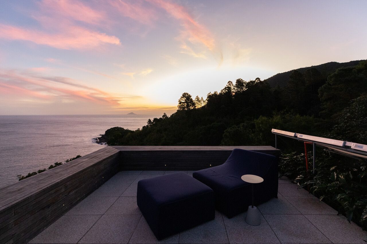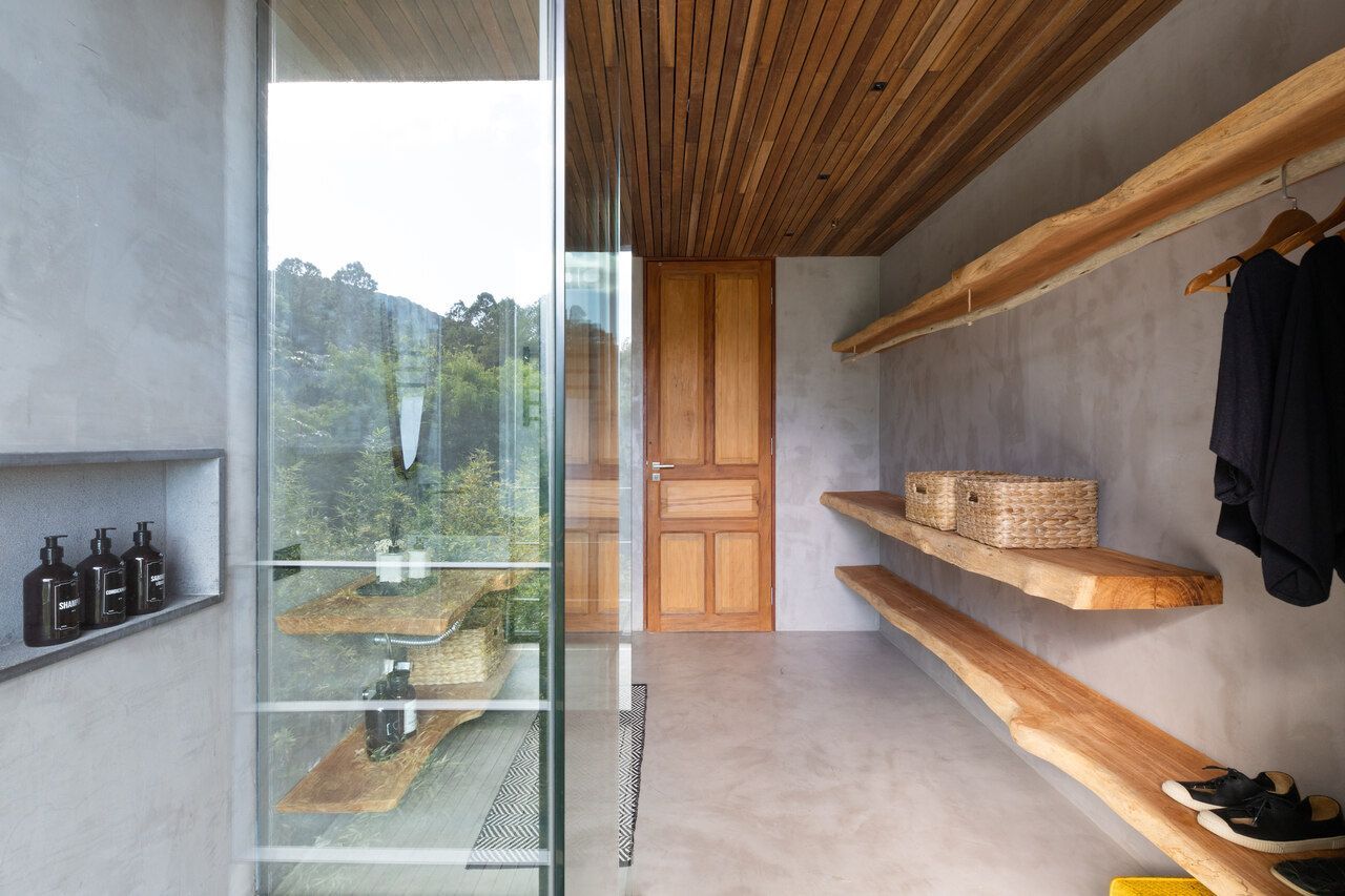 Os proprietários sempre tiveram o sonho em ter um refúgio com vista para o mar, foi um encontro perfeito, pois este local tem o privilégio de estar em uma encosta entre a serra e o mar, o terreno esta em um declive acentuado em um lugar intocável.
