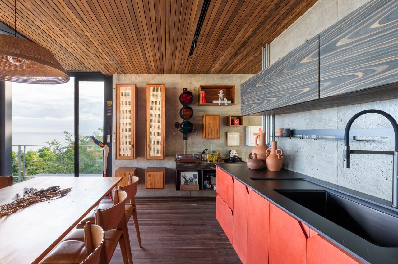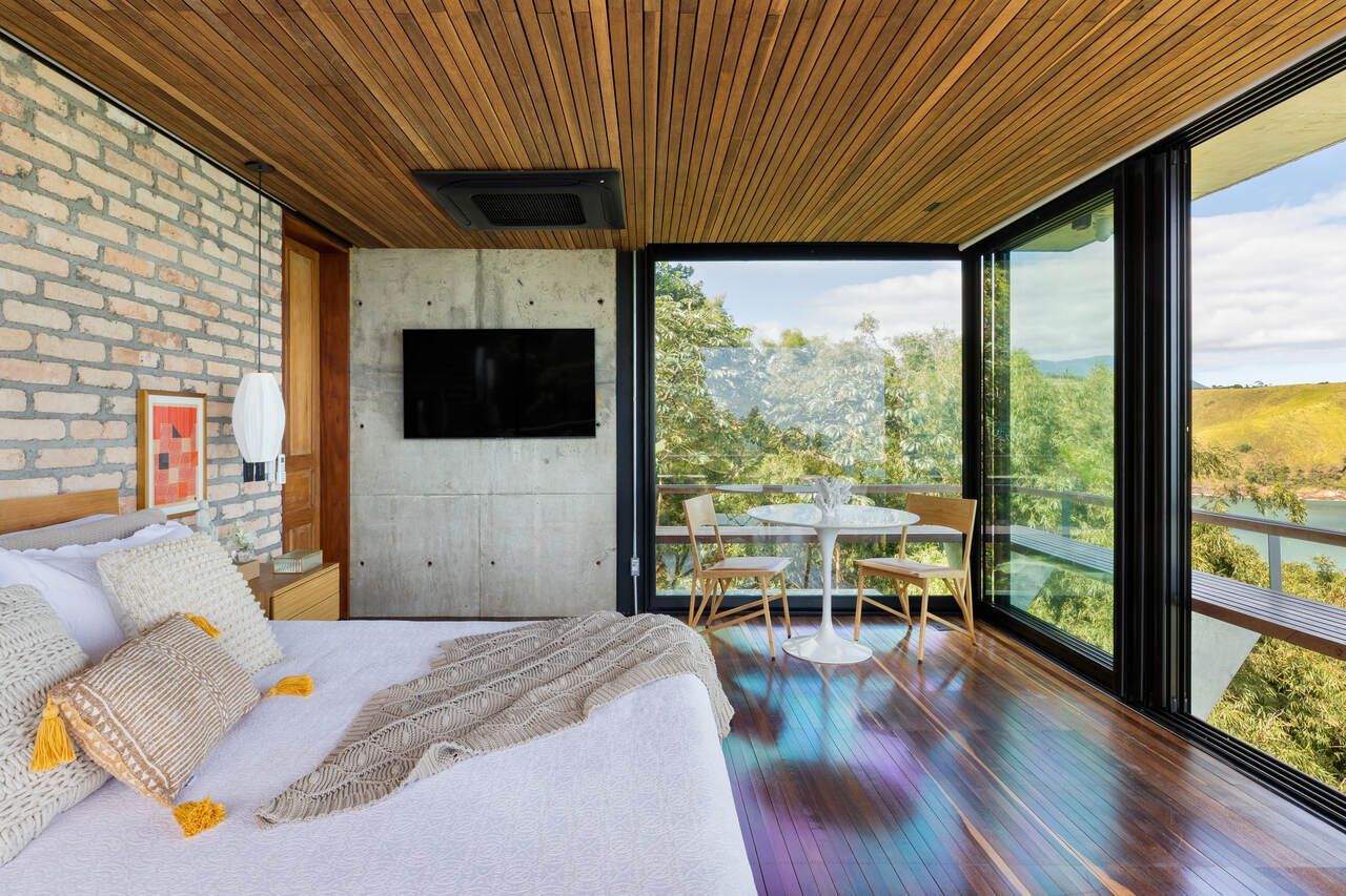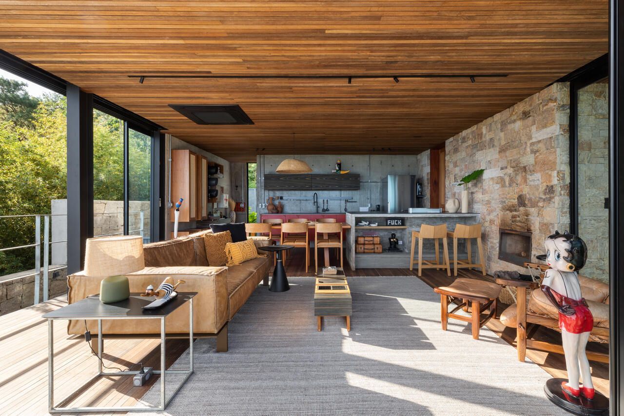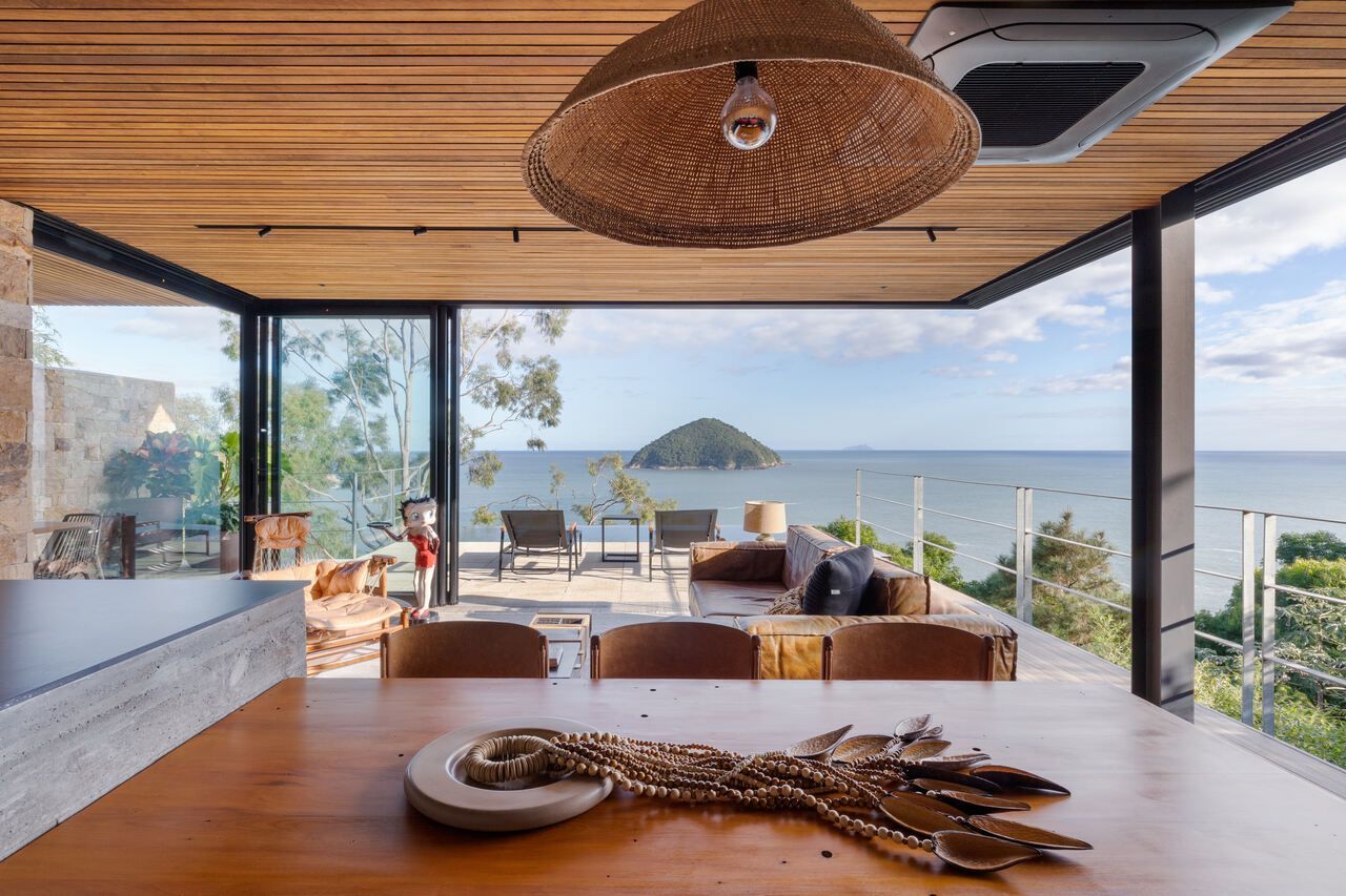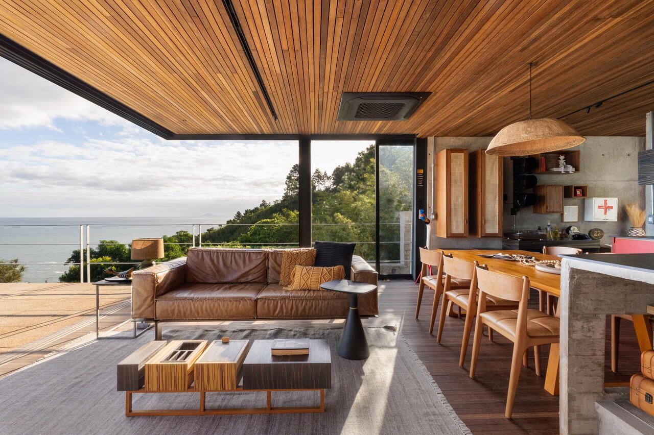 Eles queriam uma casa pequena e prática, para ter um refúgio e também locar a casa, o projeto assinado pelo Studio Carlito e Renata Pascucci é arrojado pela vista tangencial do horizonte que acolhe o seu usuário como parte da natureza.