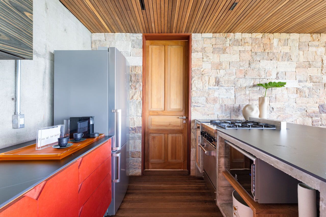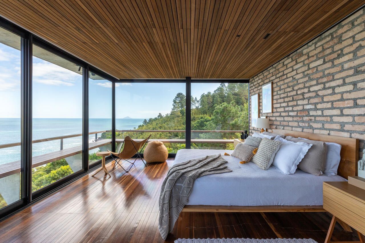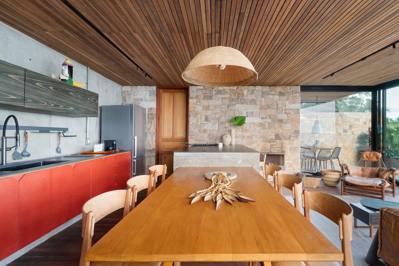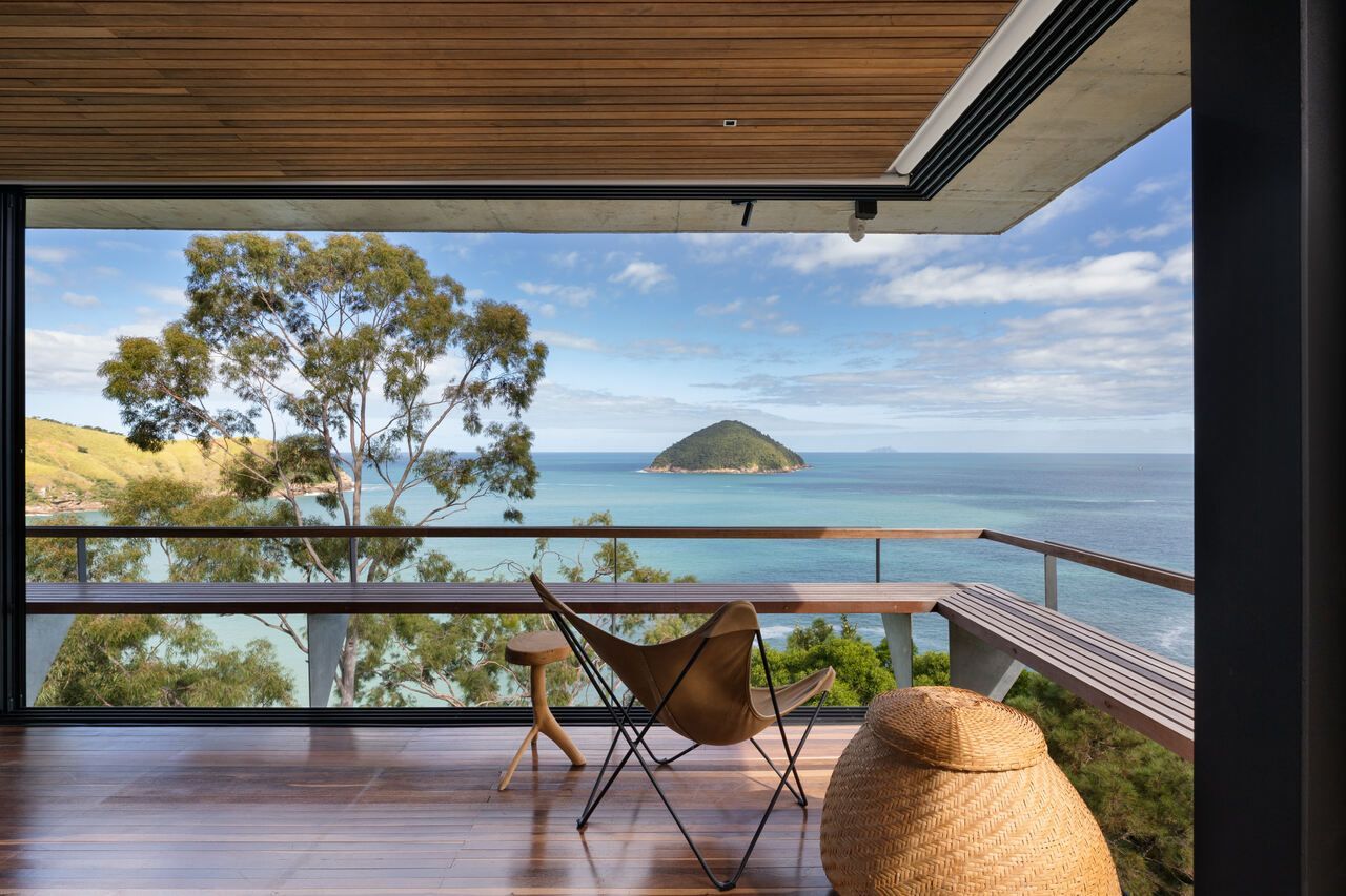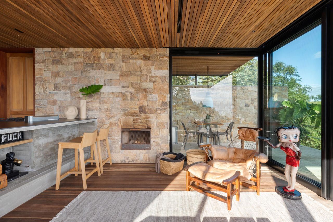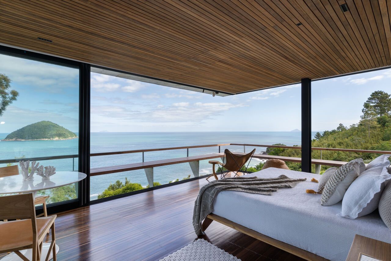 Eles queriam uma casa pequena e prática, para ter um refúgio e também locar a casa, o projeto assinado pelo Studio Carlito e Renata Pascucci é arrojado pela vista tangencial do horizonte que acolhe o seu usuário como parte da natureza.