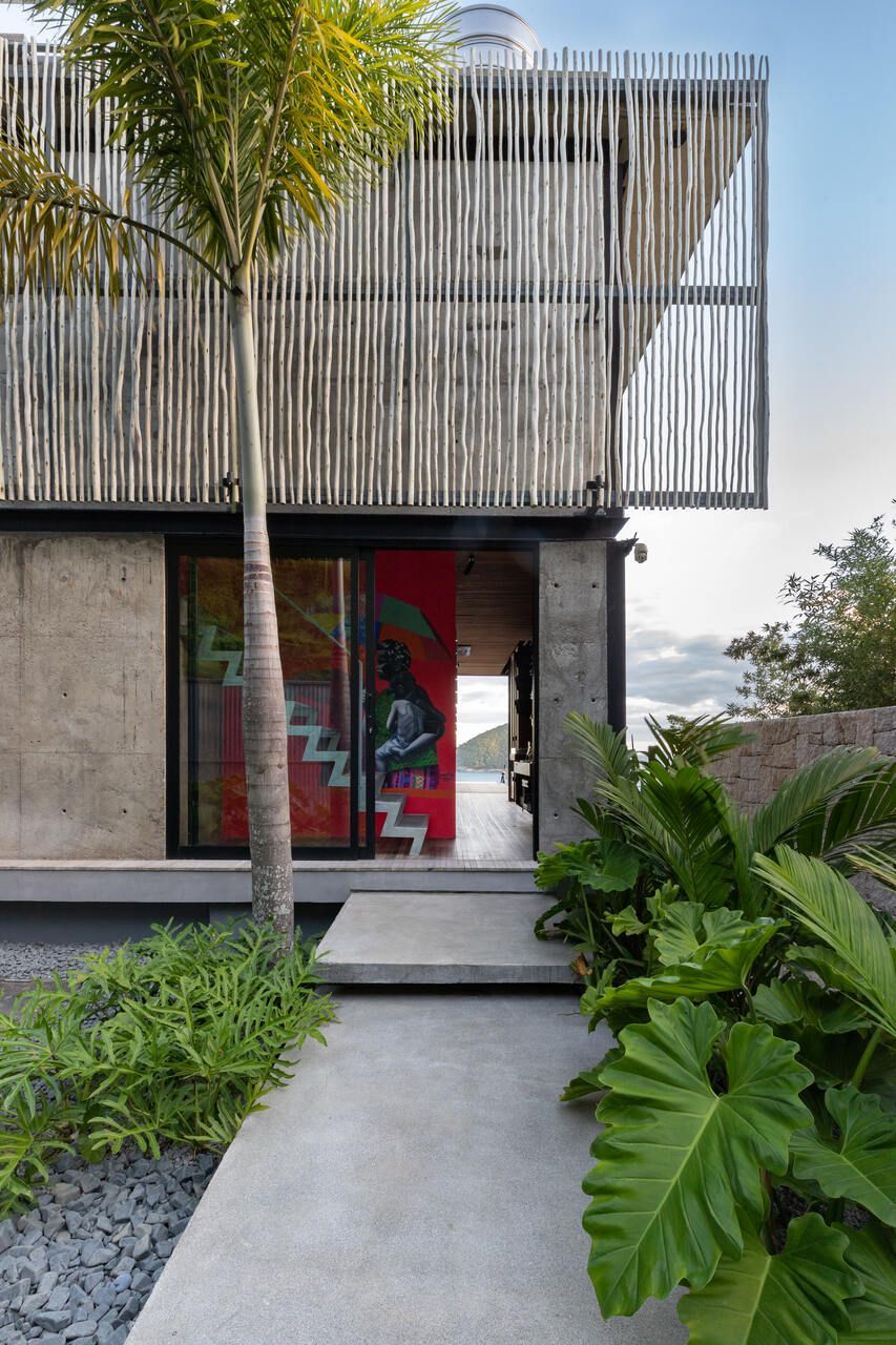 Optamos por trabalhar com grandes vãos de esquadrias, aonde se pode avistar o seu horizonte, casa esta toda aberta para a vista do por do sol e da ilha.