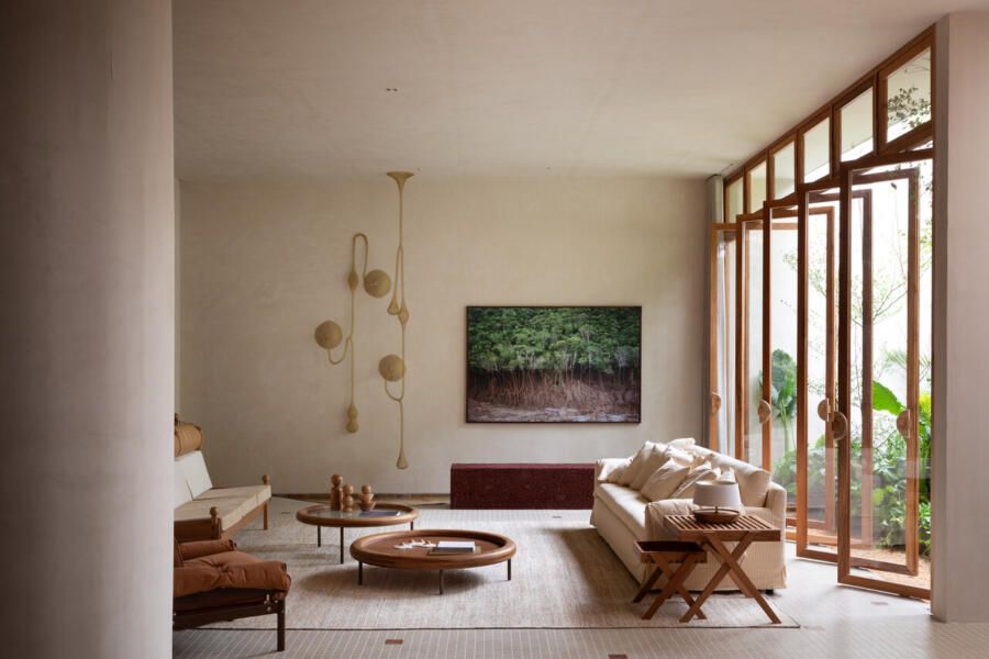 Com soluções autorais como portas desenhadas especialmente para o projeto e detalhes em pedra natural e madeira, a Casa Essência se firma como uma proposta poética e provocadora. Em um momento de crise ambiental global, o projeto se posiciona como uma manifestação visual e sensorial sobre o legado que queremos construir, questionando o futuro das relações entre arquitetura, natureza e vida.