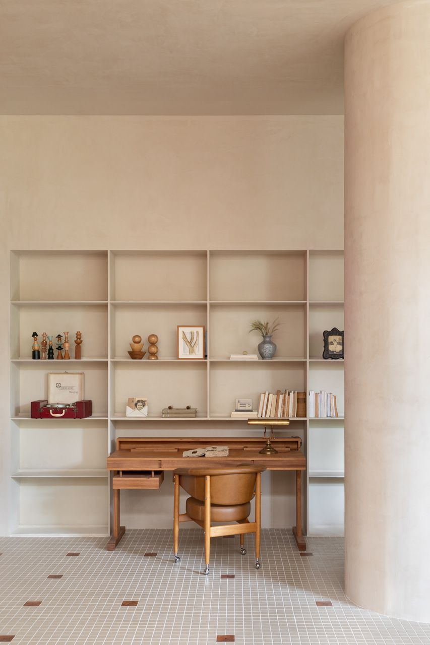 Desenvolvido para uma personagem imaginária — uma psicanalista de 55 anos — o espaço retrata um lar com memória, propósito e cuidado. O projeto parte do princípio de que morar bem é viver com afeto e história. Elementos decorativos como móveis garimpados em feiras populares e objetos que remetem a uma possível herança familiar ajudam a criar uma atmosfera acolhedora, repleta de significados.