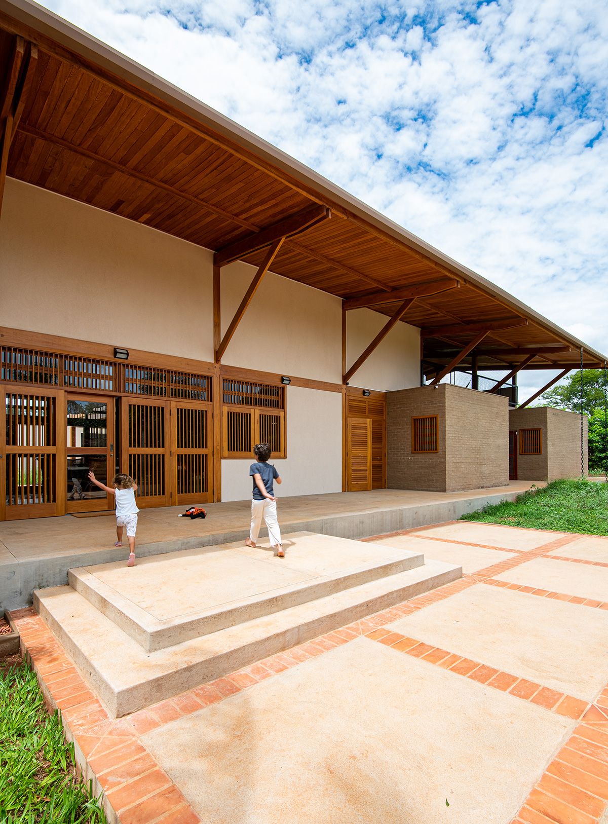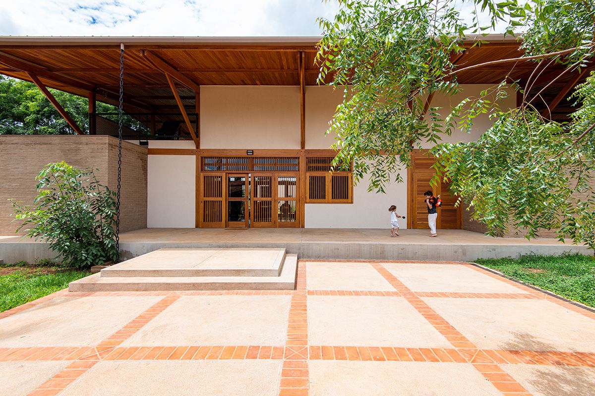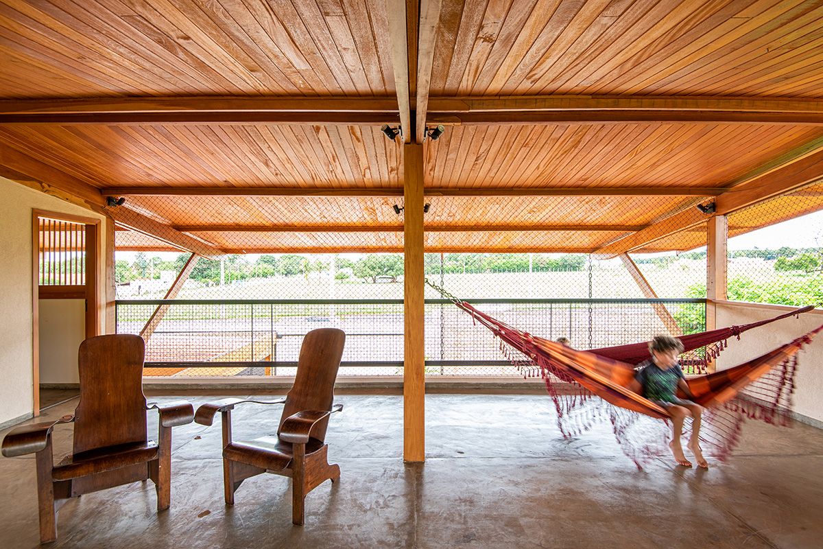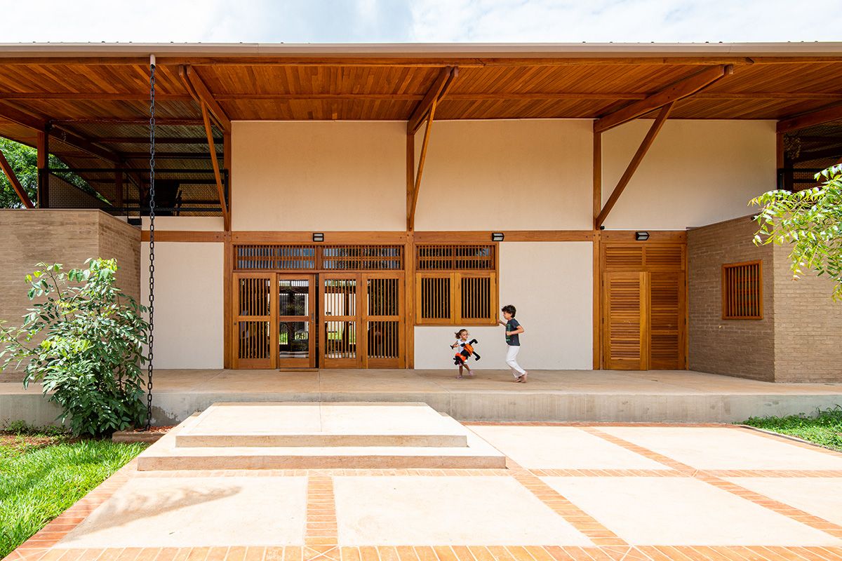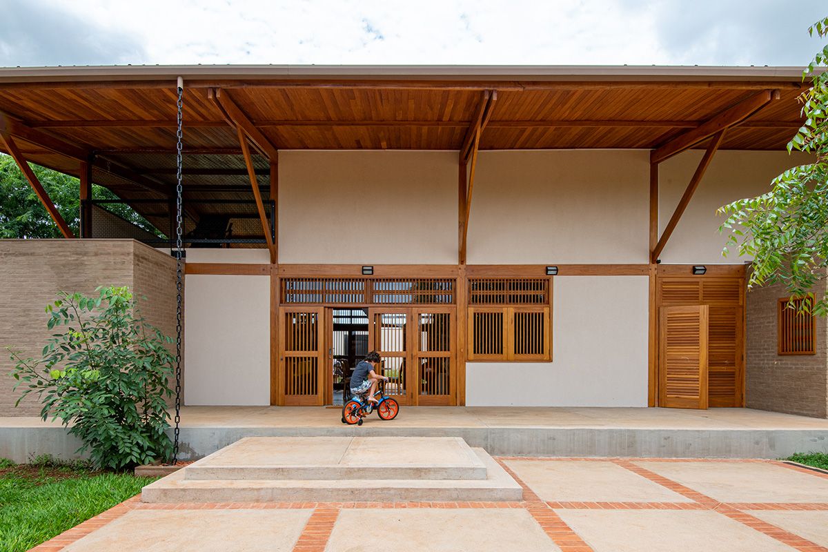 A família buscou os arquitetos Lucas Corato e Aline Coelho Sanches entre 2012 e 2013 para projetarem uma casa em Barretos, interior de São Paulo, capaz de acomodar todos os integrantes de maneira segura e agradável. Para isso, pediram três suítes, espaço para as crianças brincarem, e que, principalmente, a morada fosse fresca e ventilada: