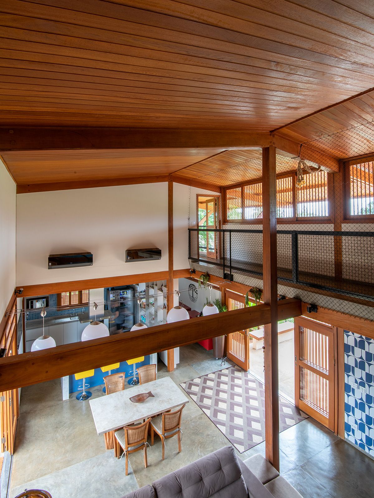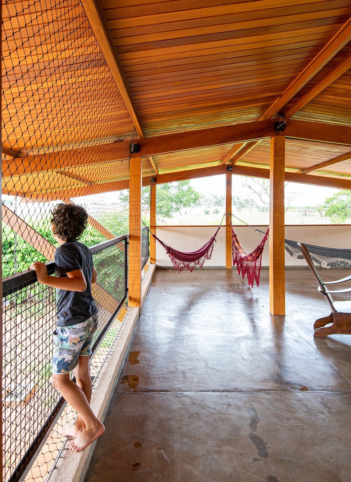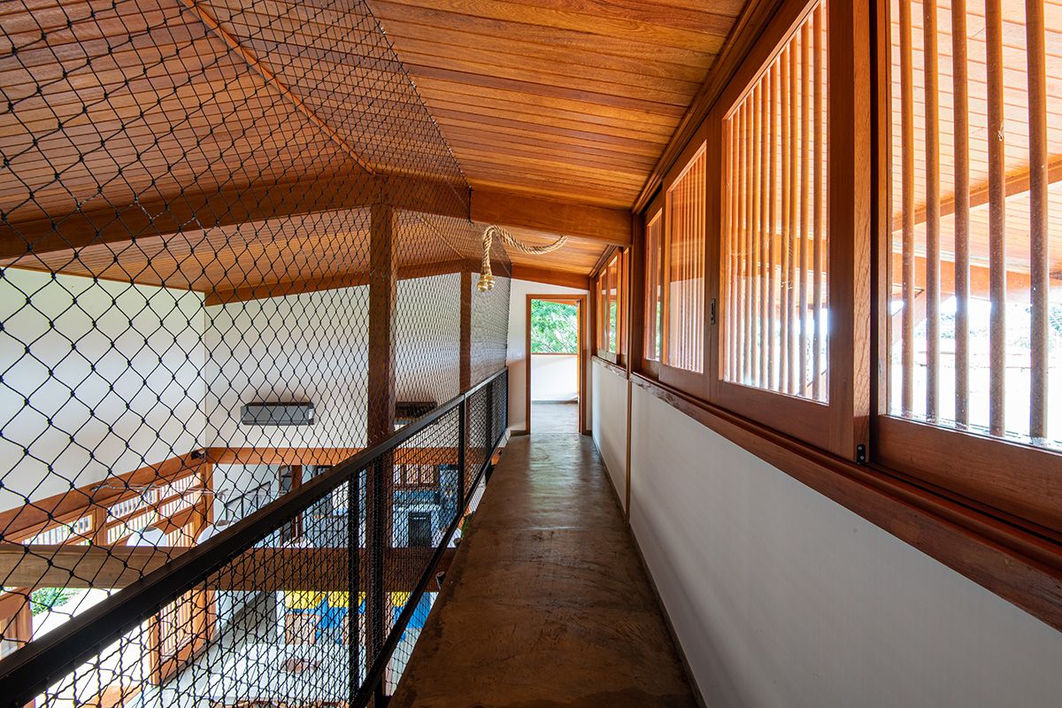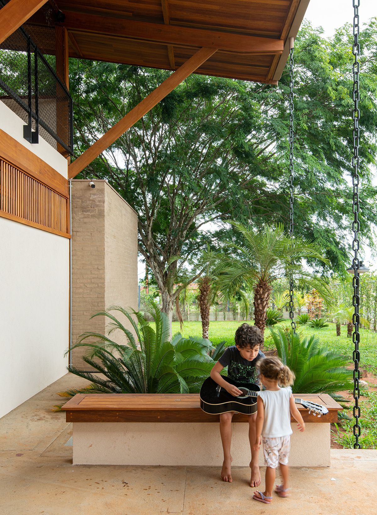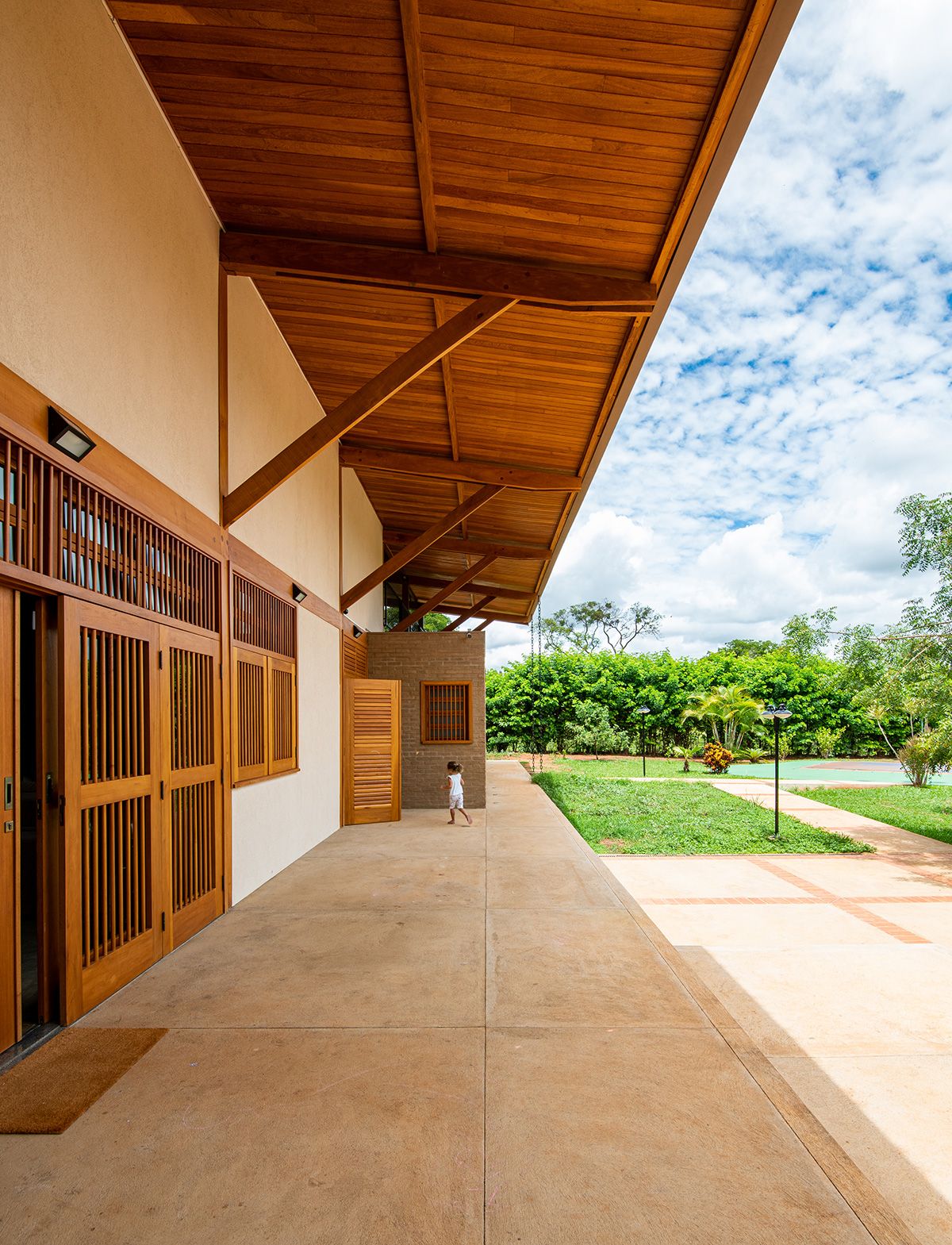 A família buscou os arquitetos Lucas Corato e Aline Coelho Sanches entre 2012 e 2013 para projetarem uma casa em Barretos, interior de São Paulo, capaz de acomodar todos os integrantes de maneira segura e agradável. Para isso, pediram três suítes, espaço para as crianças brincarem, e que, principalmente, a morada fosse fresca e ventilada:
