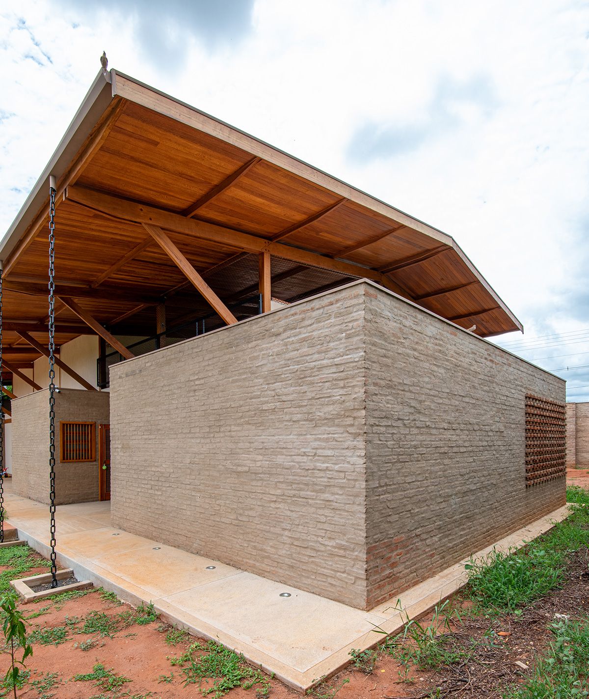 Um dos partidos do projeto foi criar uma construção que protegesse a casa do calor, já que o maior desafio era controlar o conforto ambiental.