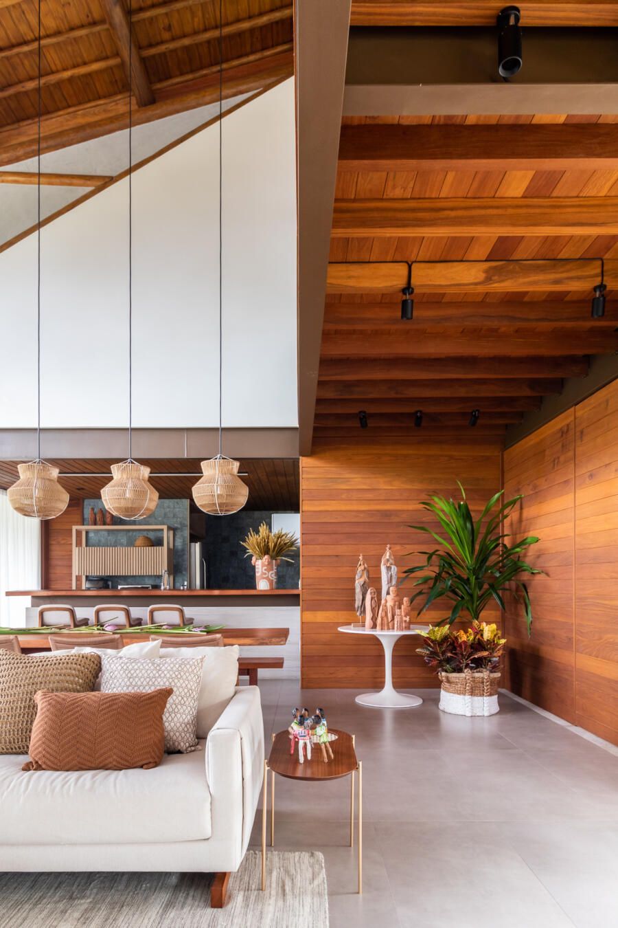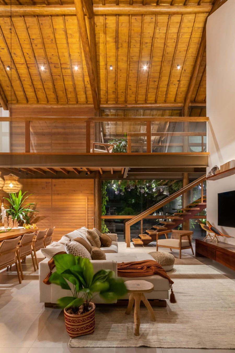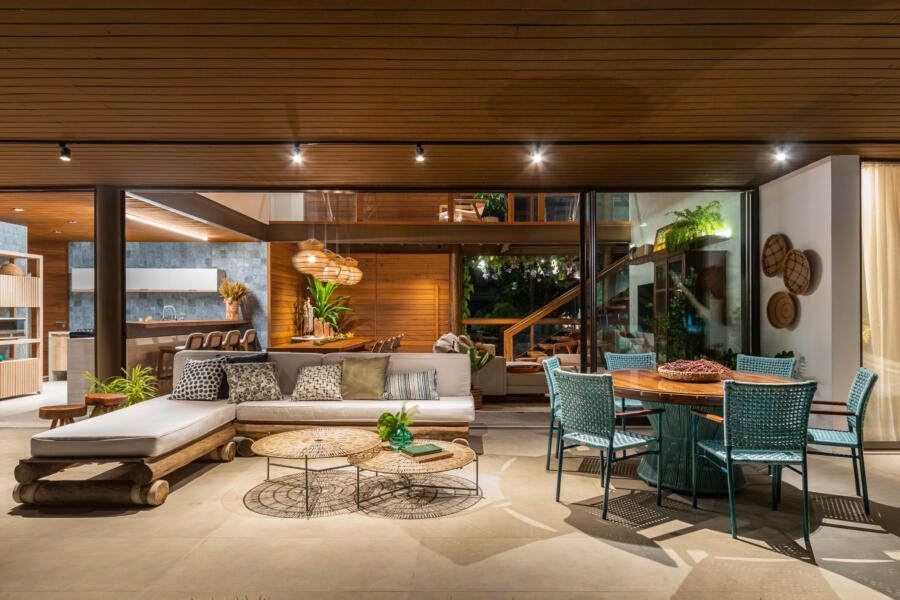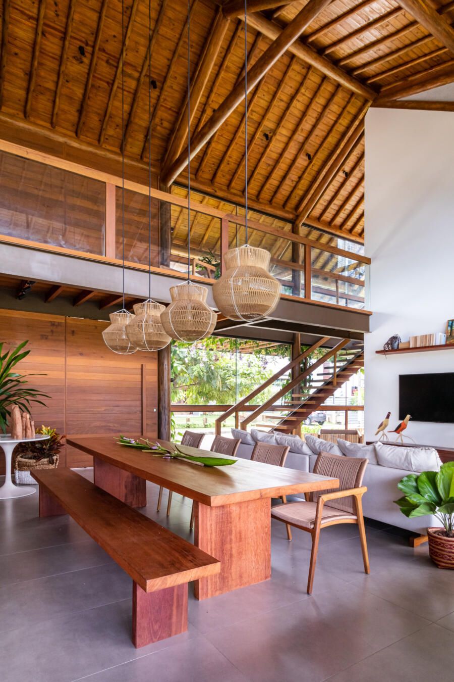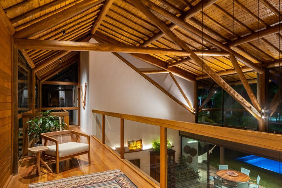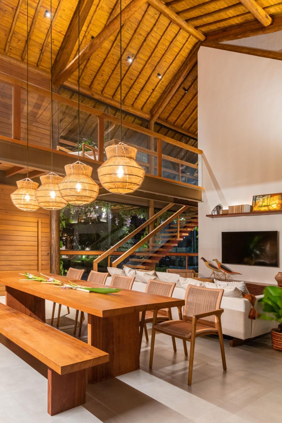 “O projeto usou solução estrutural mista, onde foi aplicado a madeira eucalipto, aço para permitir grandes vãos e concreto em pilares e lajes. Outra dica é associar de forma harmoniosa o projeto luminotécnico, materiais, revestimentos, para valorizar a arquitetura do interior e exterior.”
