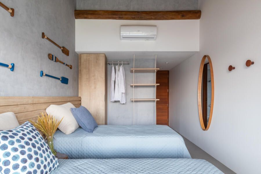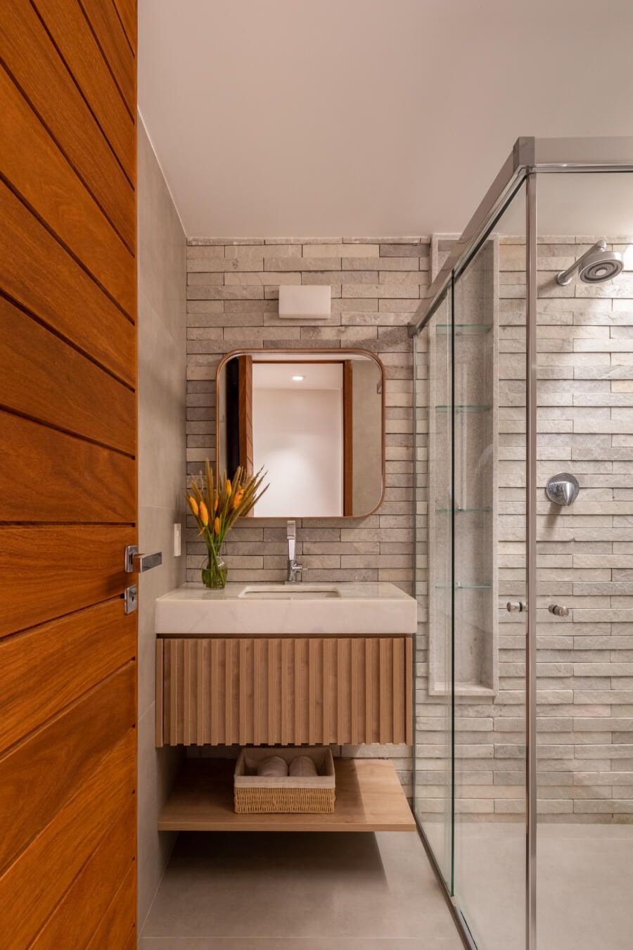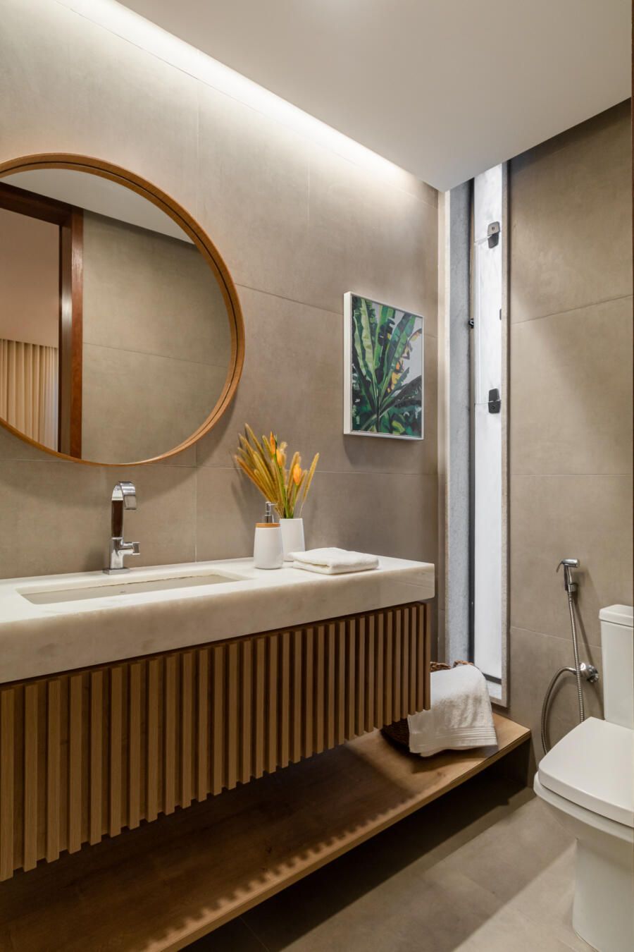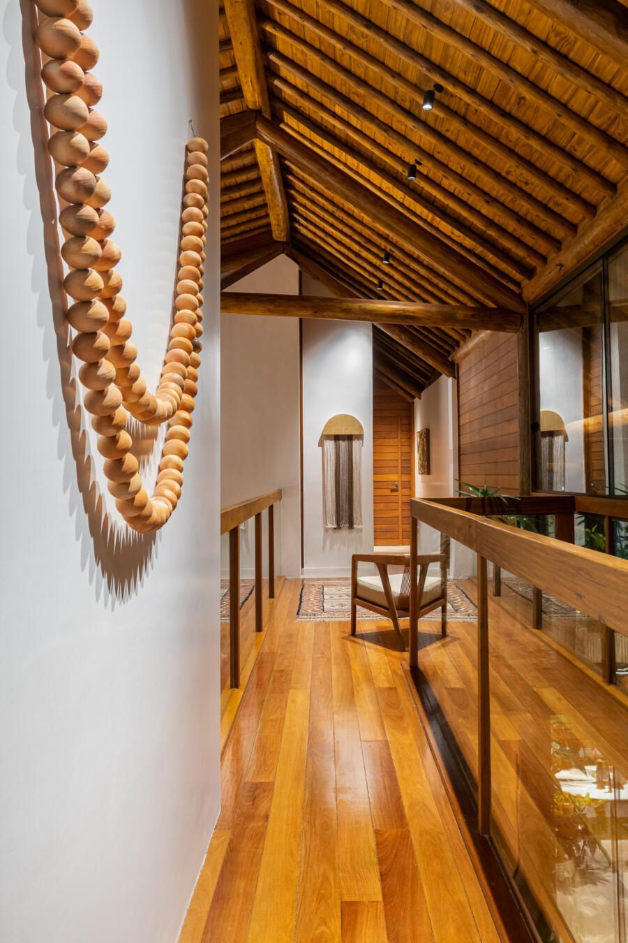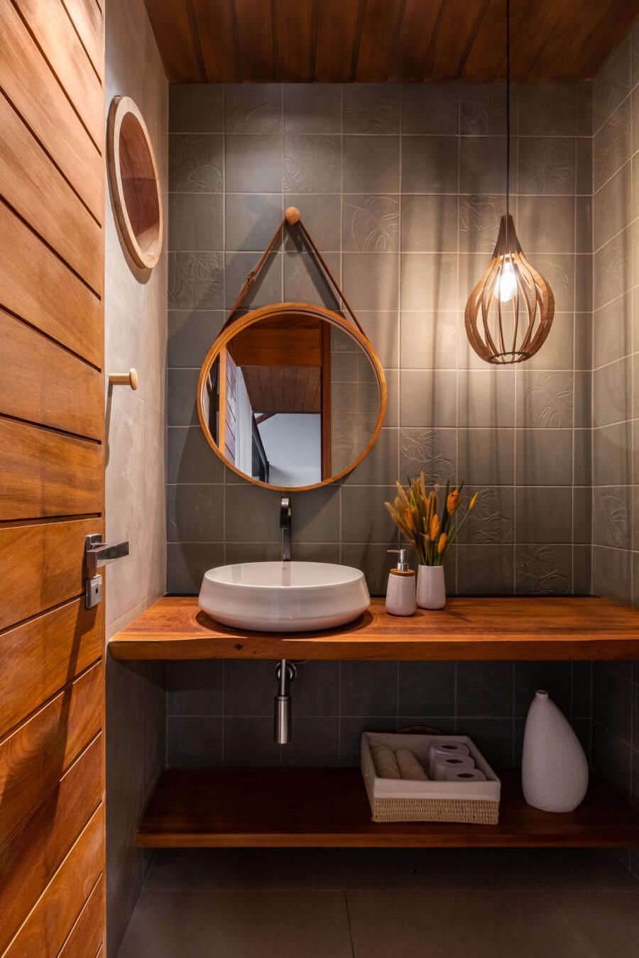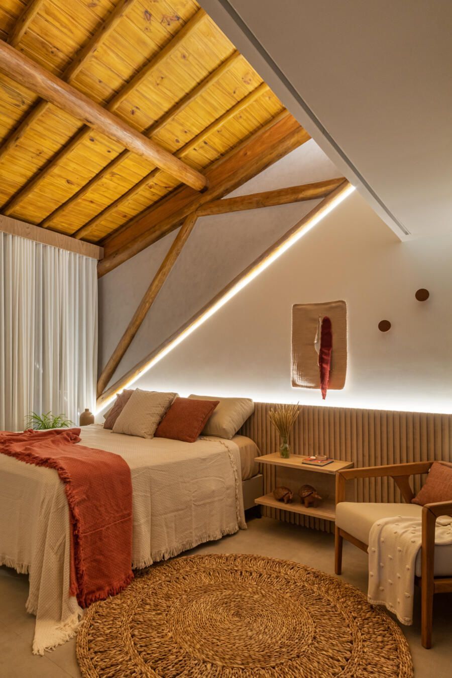 “O projeto usou solução estrutural mista, onde foi aplicado a madeira eucalipto, aço para permitir grandes vãos e concreto em pilares e lajes. Outra dica é associar de forma harmoniosa o projeto luminotécnico, materiais, revestimentos, para valorizar a arquitetura do interior e exterior.”