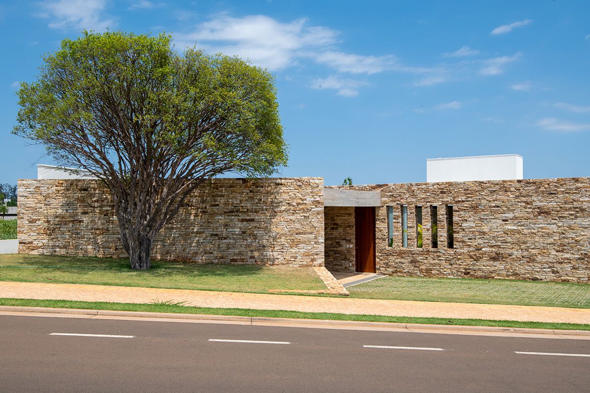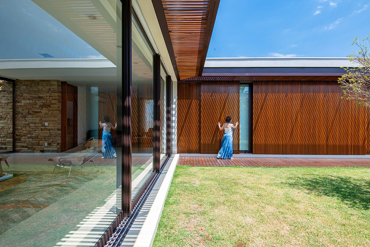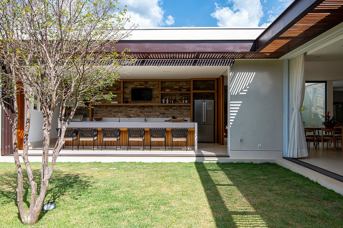 Projetada para um jovem casal com dois filhos pequenos, a casa localizada no interior de São Paulo é toda integrada, com muita luz e ventilação natural. O escritório LB+MR teve que lidar com o desafio de construir em um lote com formato pouco convencional, respeitando o recuo obrigatório de 6 metros em relação à rua, mas o resultado final foi melhor do que imaginavam!