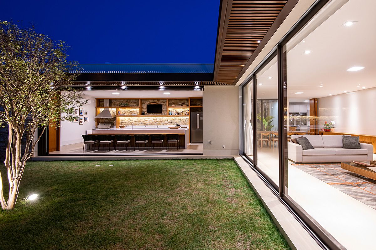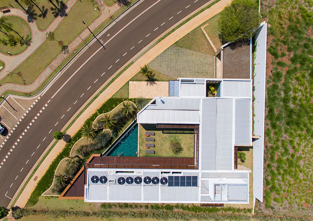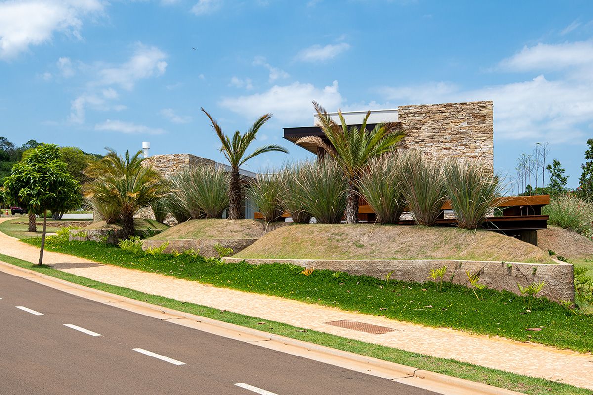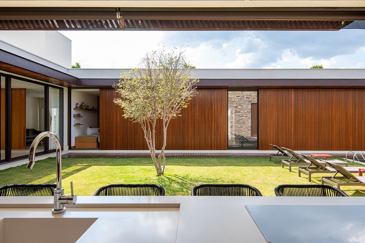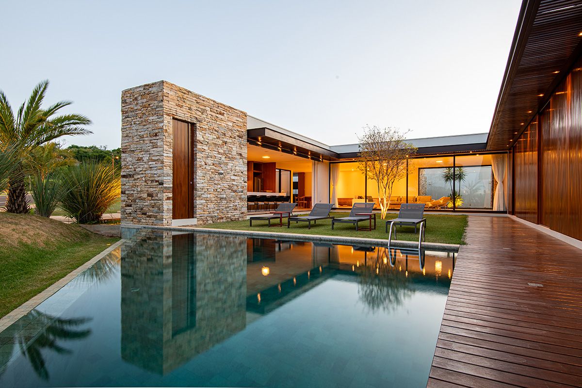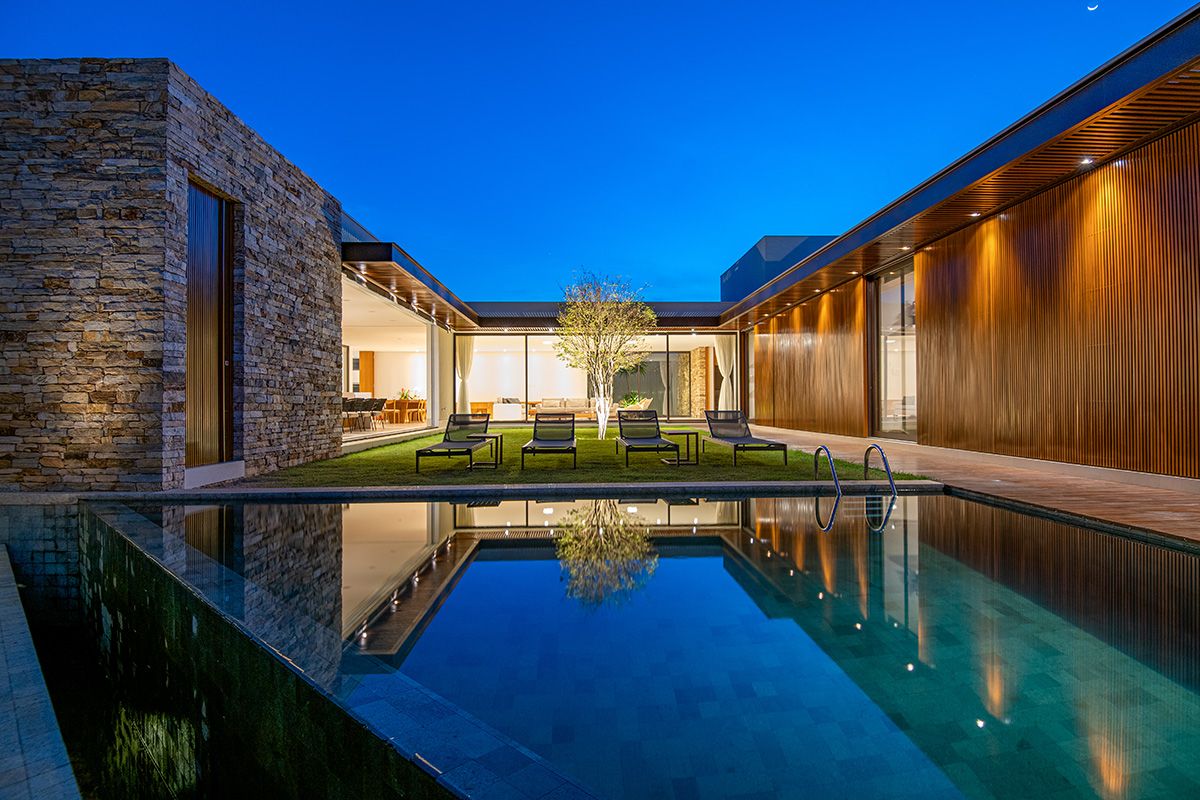Ao mesmo tempo que a faixa de 6 metros integra, ela dá privacidade aos moradores, junto ao trabalho de paisagismo que foi realizado. O projeto conta ainda com cômodos bem espaçosos e uma piscina ótima!