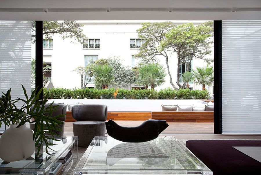 O ambiente assinado pelo escritório Lídia Maciel Arquitetura e Design para a CASACOR São Paulo é a Casa Linea. O espaço que tem estilo minimalista é parcialmente fechado por esquadrias de alumínio e vidro, que se abrem quase totalmente para fundir áreas internas e externas, onde está o deck.