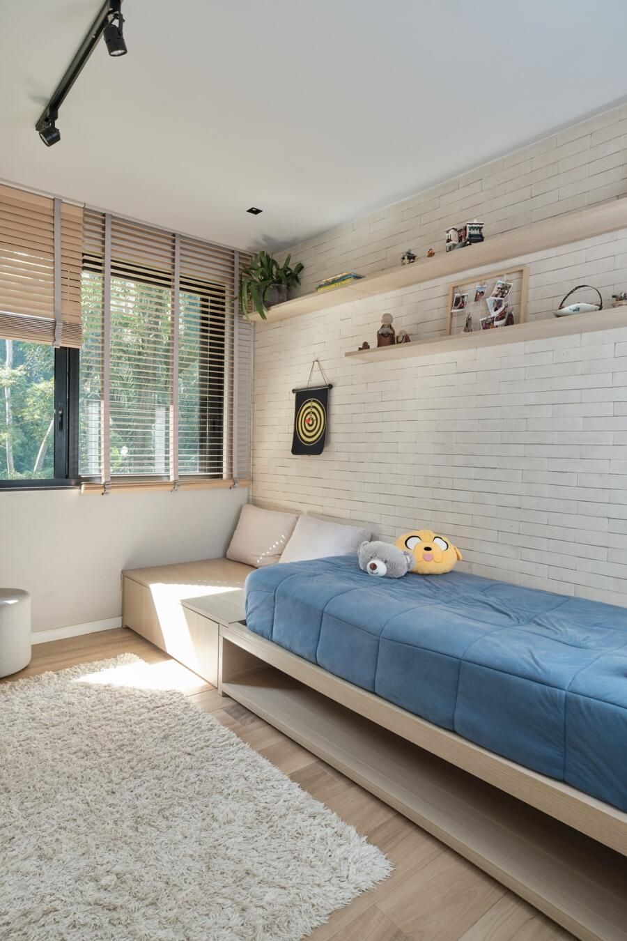 Em um terreno de 1.800 m² tomado por verde, ladeado por uma enorme pedra natural e por um riacho que percorre os fundos, o casal de proprietários encontrou o cenário perfeito para dar forma ao seu primeiro lar construído do zero: um refúgio urbano com alma de casa na serra, onde a vida familiar pudesse se expandir em ritmo de natureza.