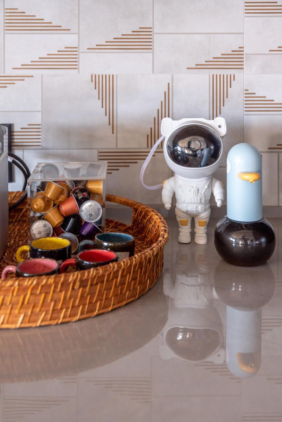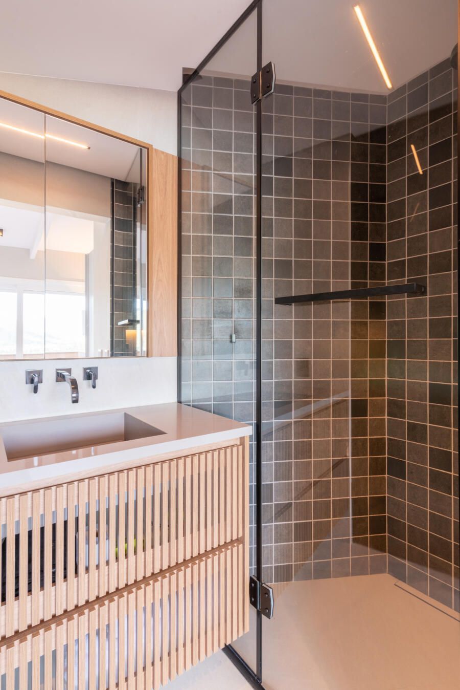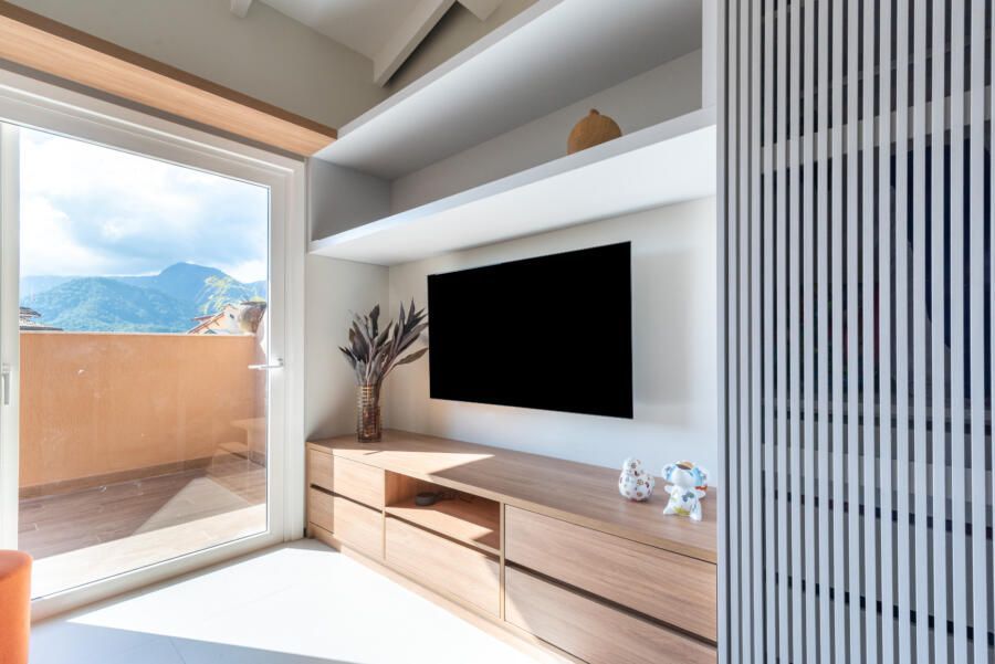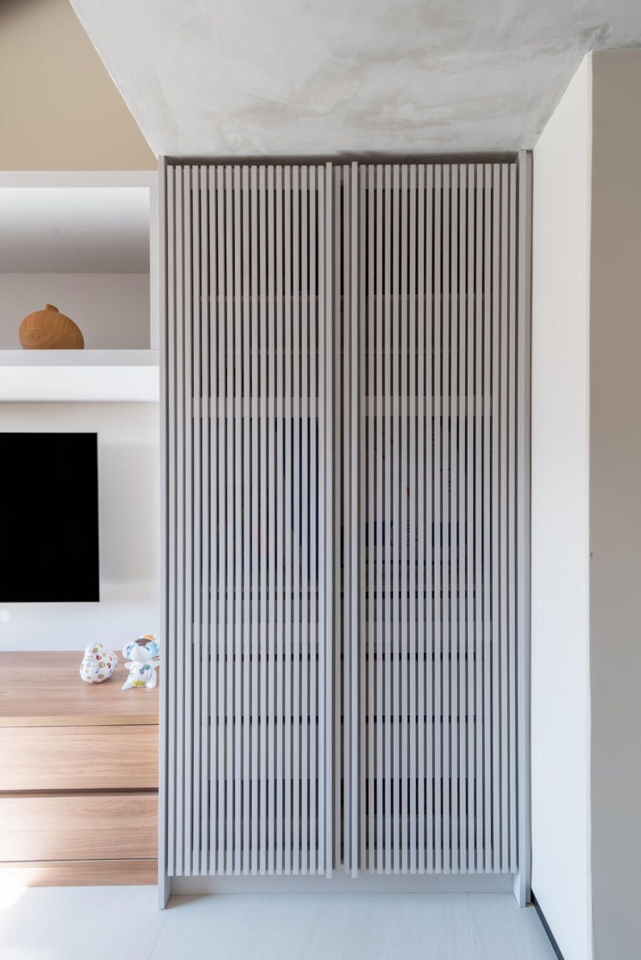“A criação de um mezanino na inclinação do telhado, o terceiro pavimento (com uma escada móvel para parede) tinha como função acomodar o hobby de jogar do Alê, que já virou um job para ele, de consultoria e avaliação de jogos no Metaverso.”