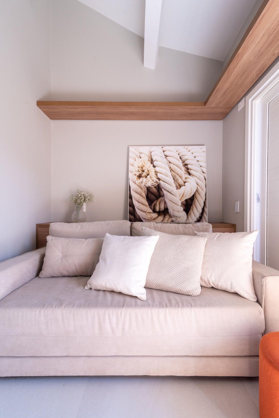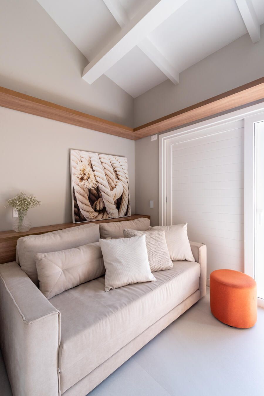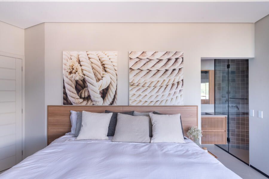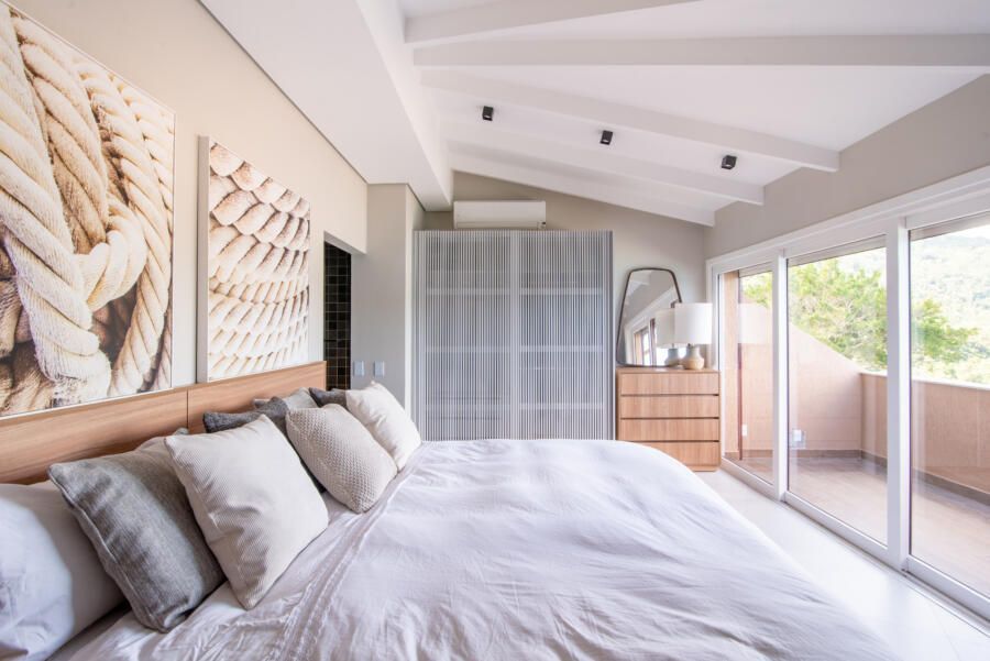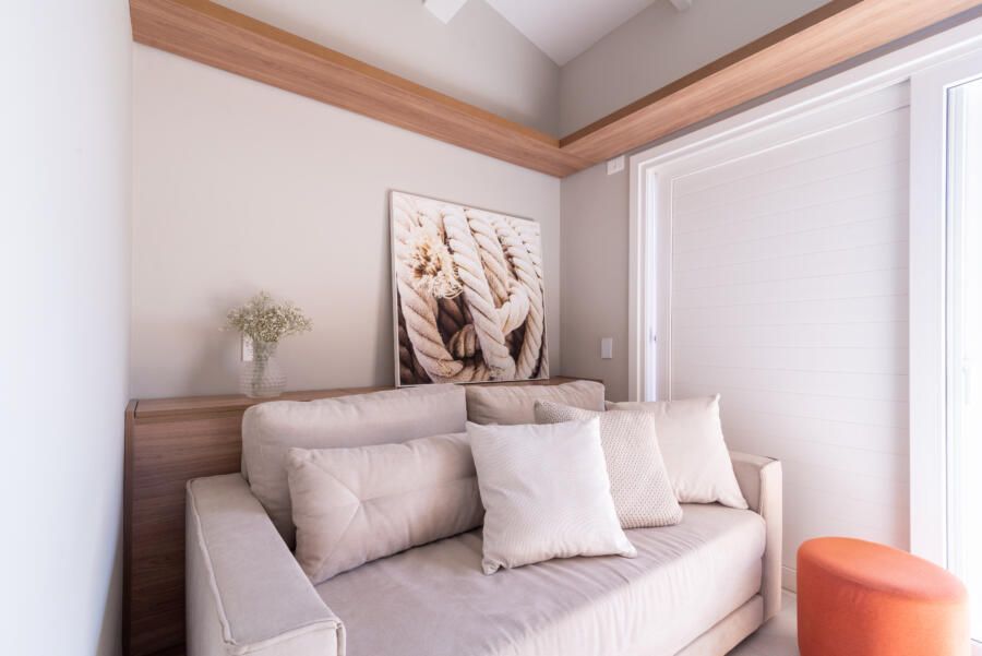 Além disso, algo pouco usual quando pensamos em casas de praia e que também foi feito pensando no conforto e rotina dos moradores, foi a criação do mezanino com mesa de trabalho e computador de última geração.