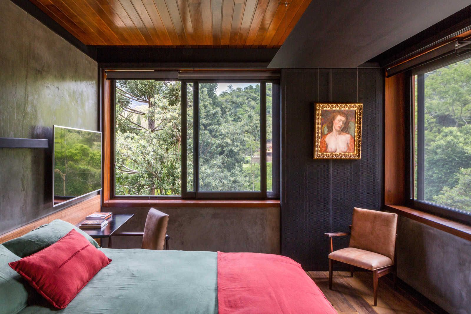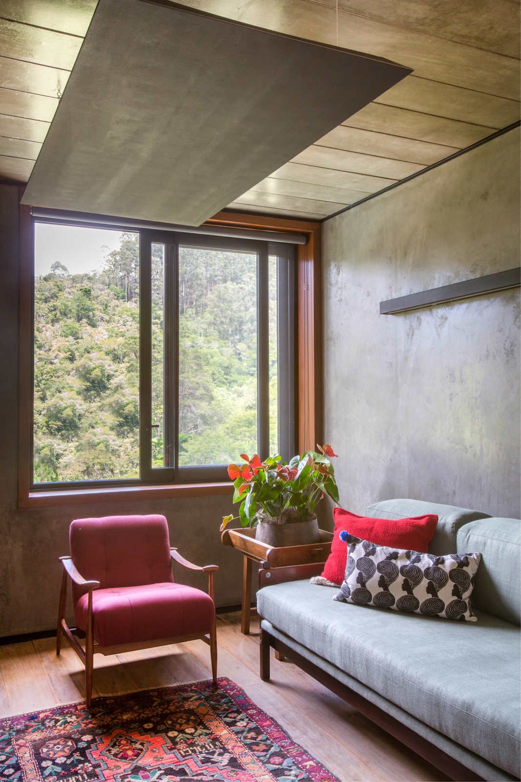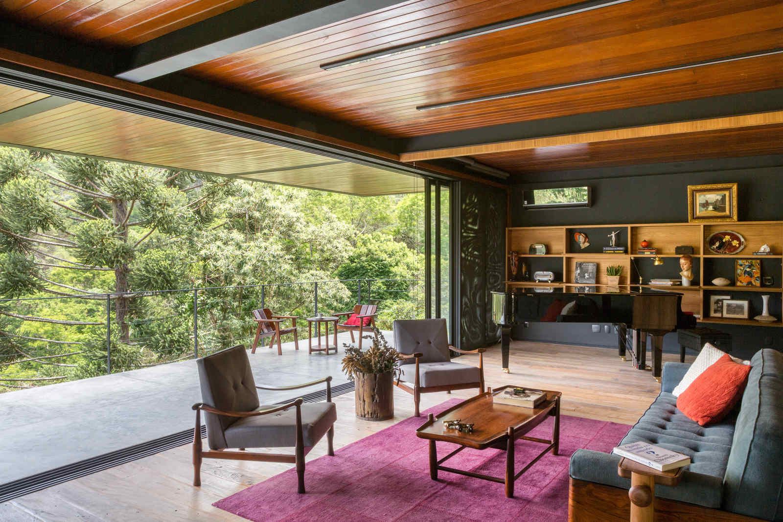 Uma casa no topo da montanha com linguagem contemporânea e móveis garimpados. Esse foi o resultado deste projeto executado pelos arquitetos do escritório Ao Cubo Arquitetura em Petrópolis, Rio de Janeiro, para um engenheiro solteiro.
