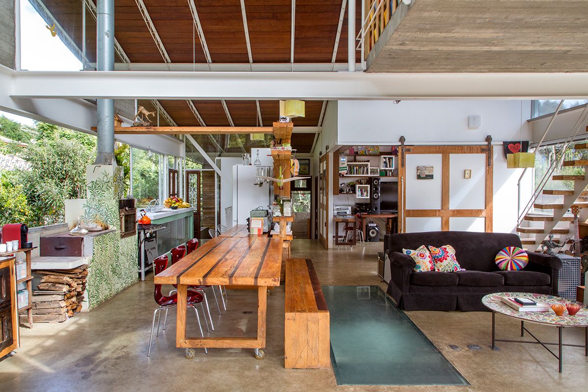 Outros pontos ainda foram importantes para a sustentabilidade da proposta, como ventilação e iluminação naturais; uso responsável de matéria prima – reciclagem de madeira, pedras e aço -; e escolhas perenes com custo mais acessível, como piso de concreto polido, estrutura metálica aparente e materiais em estado bruto.