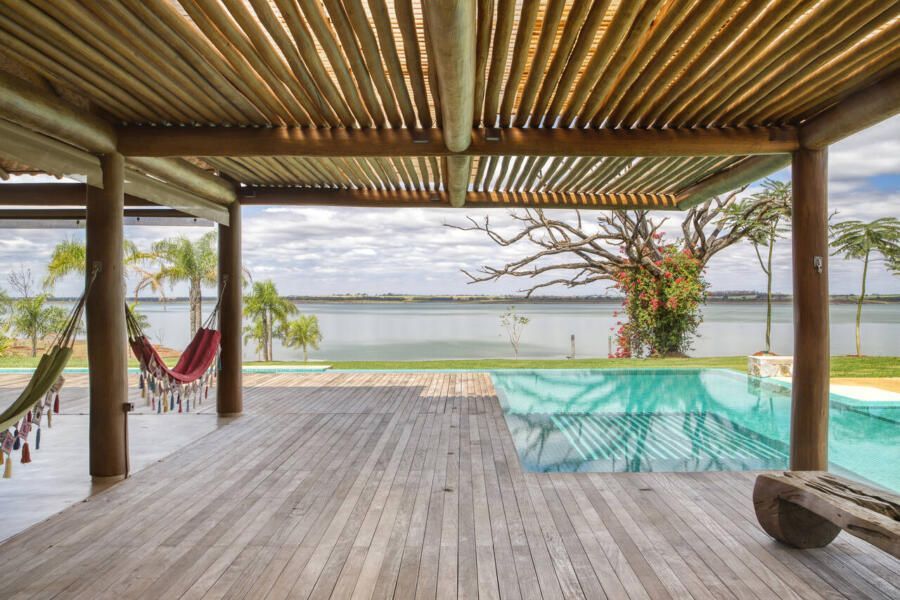 Módulo de Lazer: Abriga a área gourmet, espaço de estar coberto e piscina descoberta voltados para a represa.