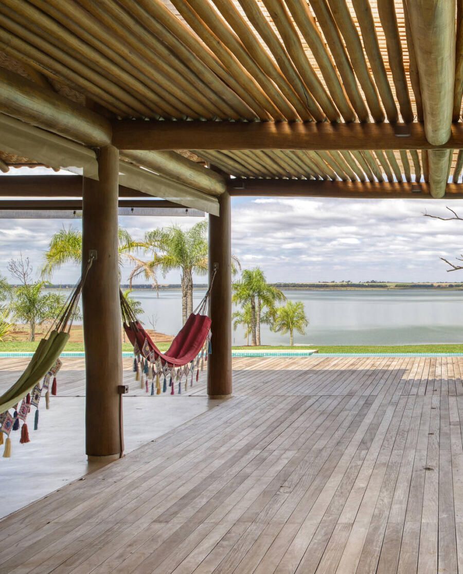 Com 770 m² de área construída em um terreno de 6.876 m² às margens da represa da Usina Hidrelétrica Marimbondo, a casa foi idealizada para um casal na faixa dos 60 a 65 anos. O objetivo principal era criar um espaço aconchegante para reunir a família em férias e finais de semana.