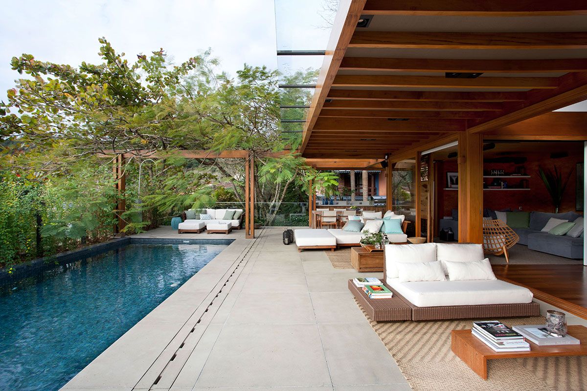 Guiada por um mix de texturas naturais, uma de suas marcas de trabalho mais notórias, Juliana Pippi projetou uma casa elegante e clean ao mesmo tempo, um projeto feito para a família aproveitar e usufruir de cada ambiente. Um dos toques mais especiais é o Flamboyant que foi preservado aos fundos e emoldura a bela piscina.