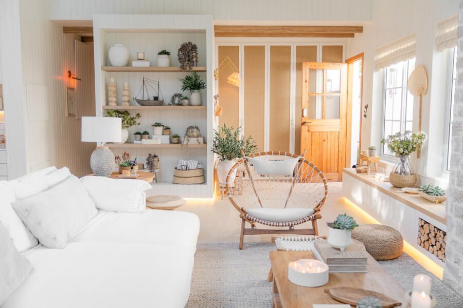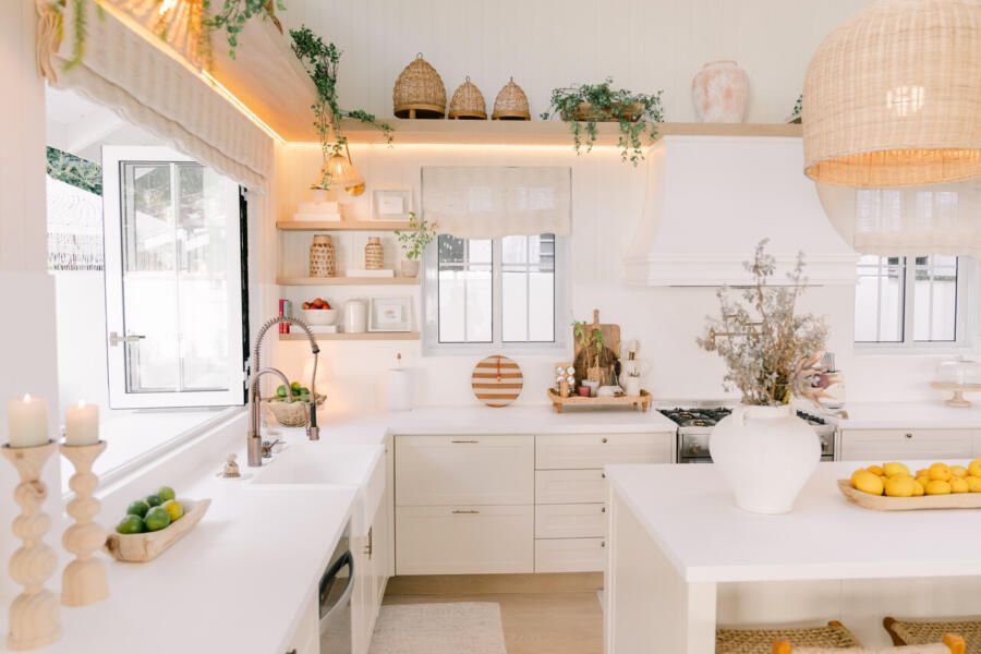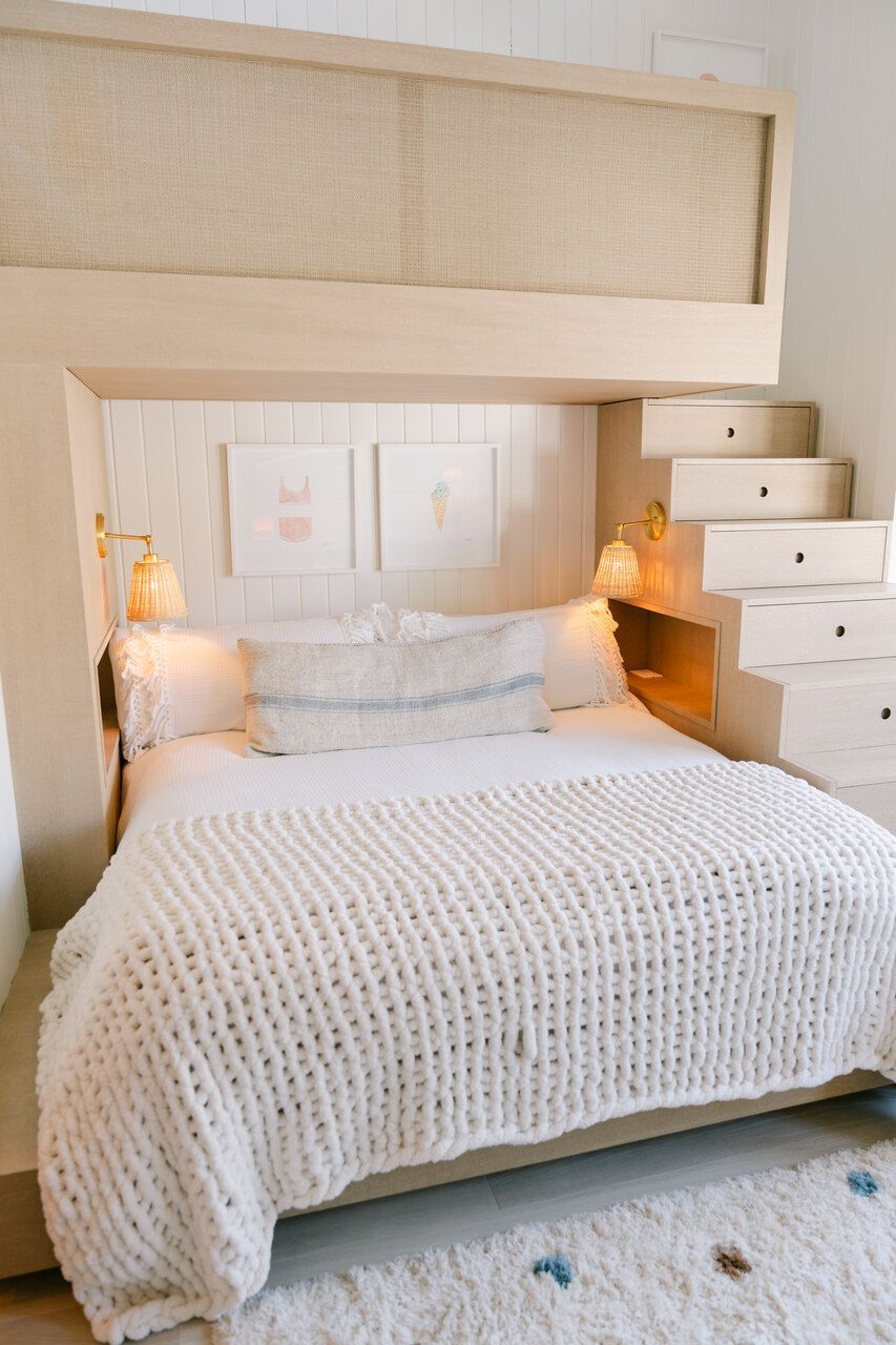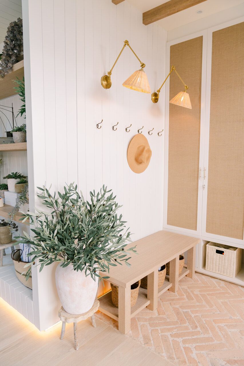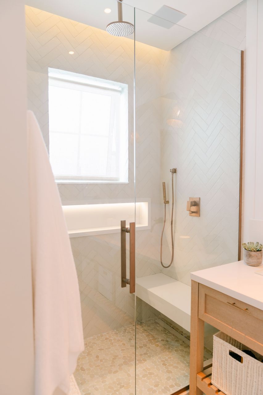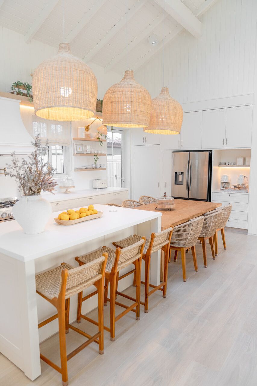 Além do desafio de conceber um projeto americano em pleno litoral brasileiro, as arquitetas também buscaram contemplar diversos itens que a família gostaria de ter em sua casa dos sonhos na whislist, como: barwindow, porta holandesa, banheiros Jack and Jill, janela em estilo náutico, portas camarão, shiplap, mansardas, vigas falsas, baywindow com bancos, e muitas arandelas.