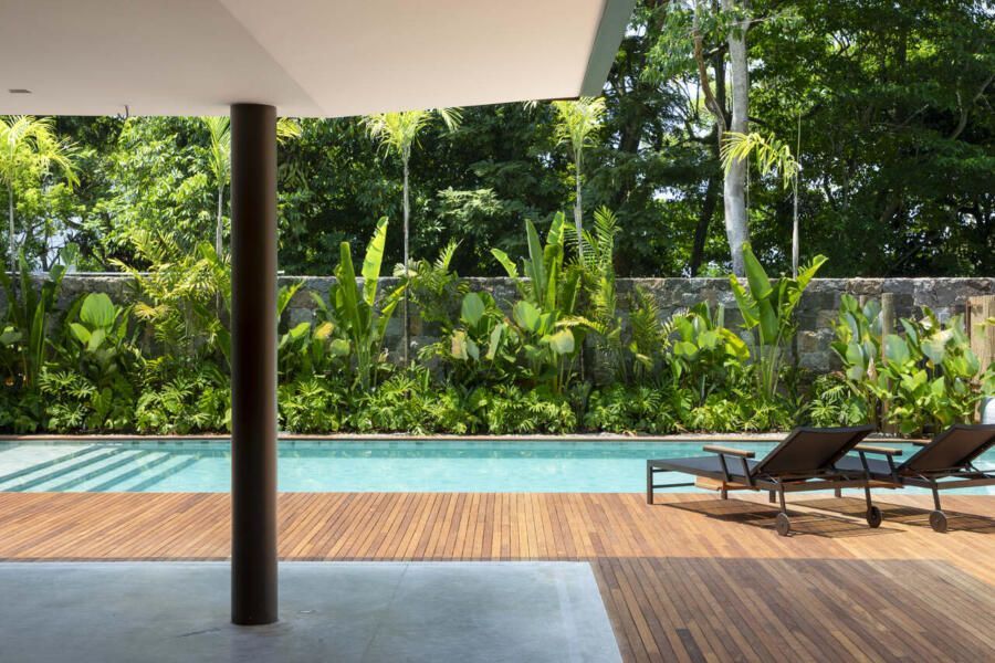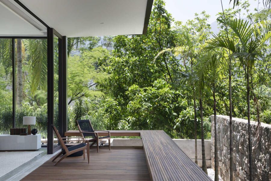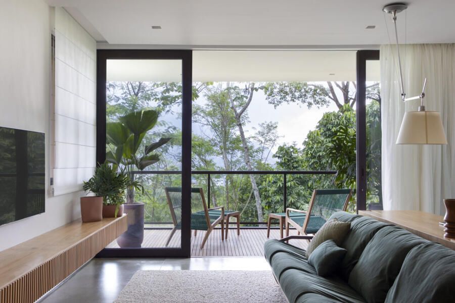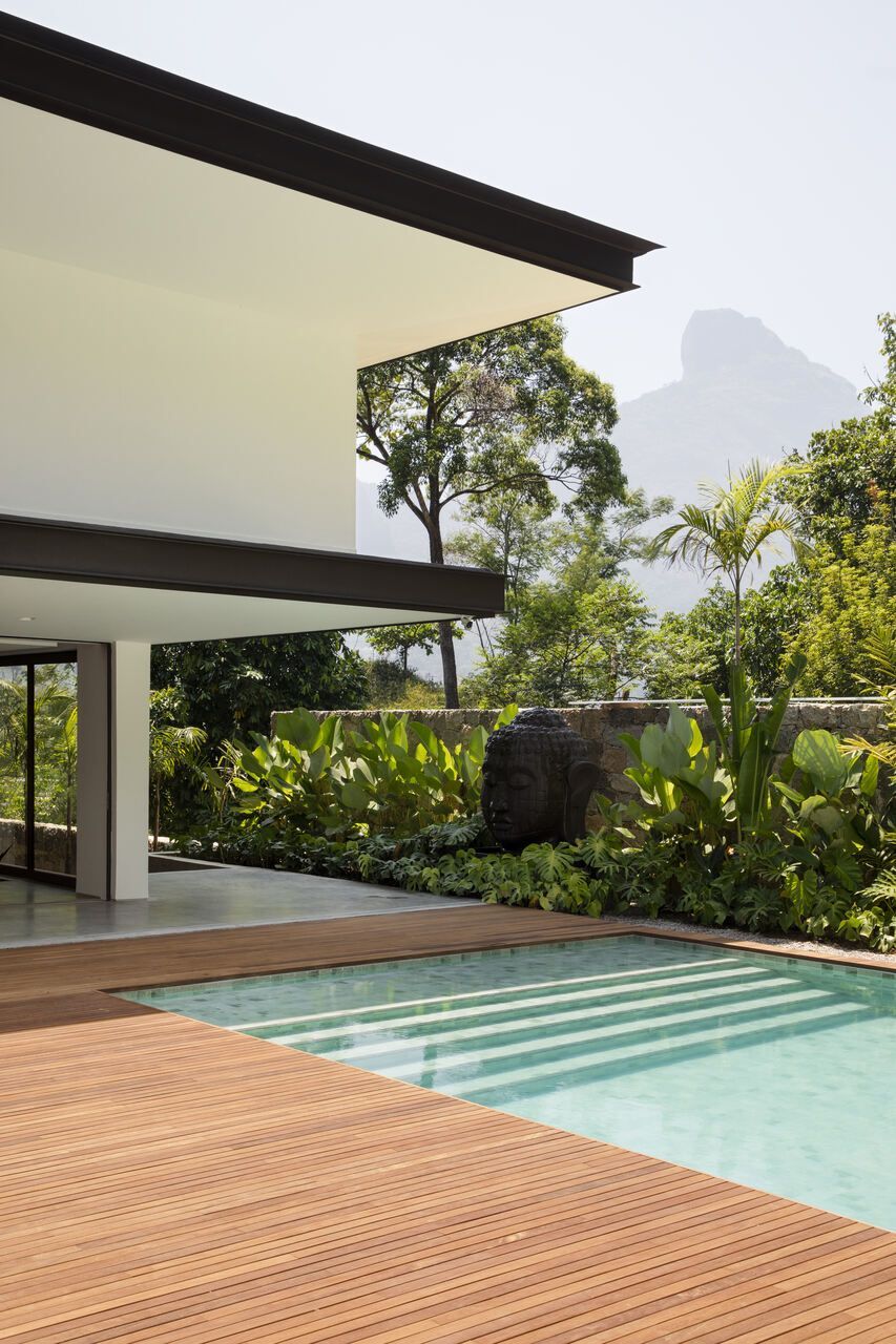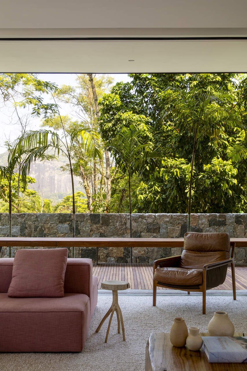 Em um condomínio no Rio de Janeiro, uma família com três filhos decidiu construir do zero uma casa que atendesse ao desejo de viver mais próximo da natureza. O projeto assinado pelo PKB Arquitetura partiu da topografia acidentada e da vegetação abundante da região para propor uma residência que se molda ao terreno e explora de forma inteligente a vista para a Pedra da Gávea.