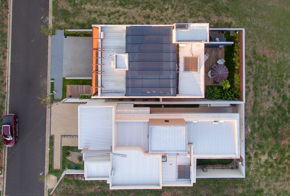 Minimalista, o conceito construtivo se restringe apenas ao necessário, contribuindo para sustentabilidade e economia de materiais. Sua construção possuí oito pilares principais e repete grande parte de sua forma e metodologia nas cotas de elevação. Apostando ainda em economia, grandes aberturas possibilitam a circulação da ventilação natural, transformando a temperatura interna da residência em minutos.