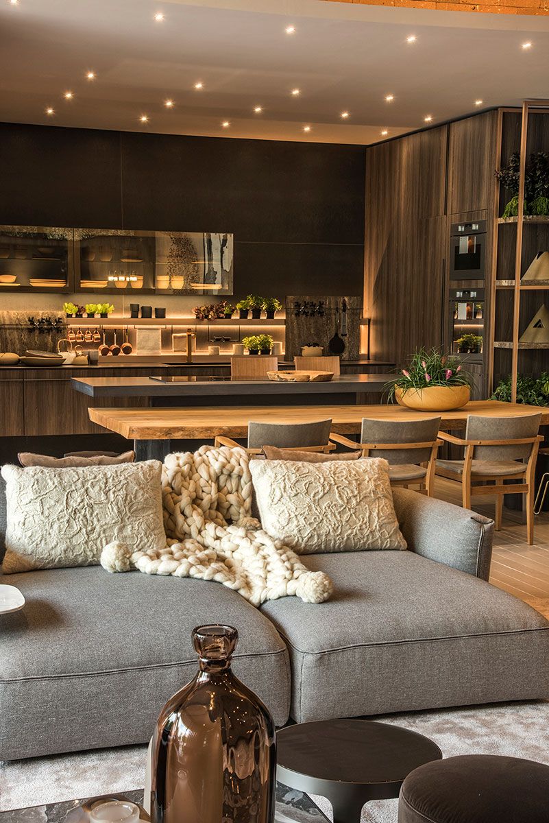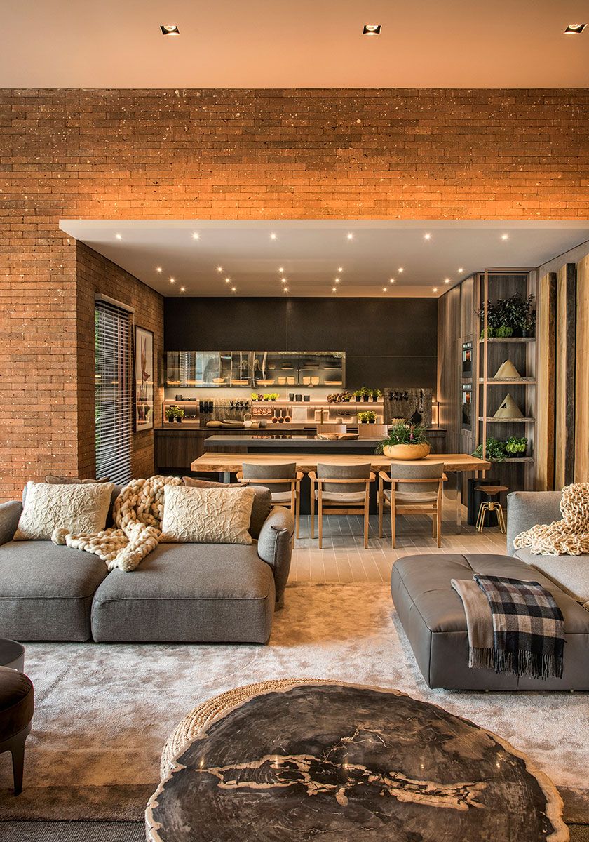 Denise Barretto se inspirou nos elementos da natureza, como a terra, a pedra e a madeira, para conceber o Espaço dos Convidados, que é dedicado ao relaxamento e perfeito para reunir a família e os amigos. O projeto de 218 m² integra living, cozinha e terraço. Reunidos num único ambiente, o living com lareira e a cozinha gourmet estão sempre conectados ao jardim de 118 m², graças aos generosos panos transparentes de vidro. Esta é a 15ª participação de Denise na CASACOR São Paulo.
