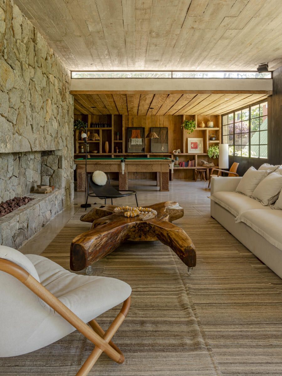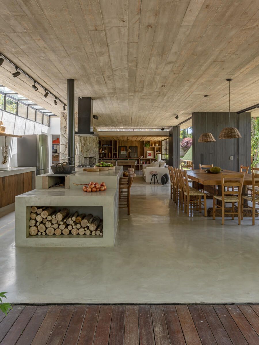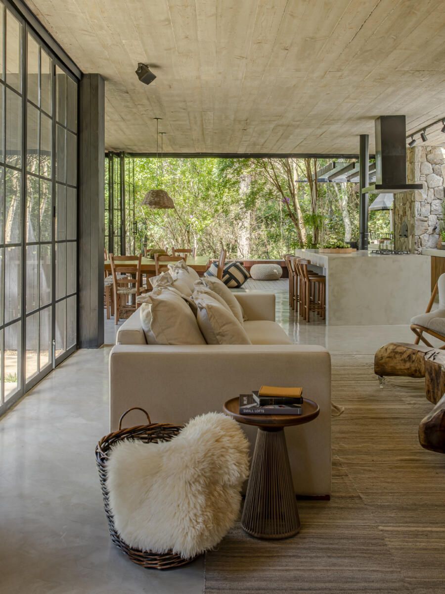 “A criação do projeto foi lado a lado com os clientes. Eles desejavam que apostássemos em materiais naturais, como pedra, concreto e madeira, usando como referência as casas de campo do Uruguai. Algo sem luxo, mas com um visual muito aconchegante voltado para a natureza. Misturando as nossas ideias com as deles, conseguimos chegar no projeto ideal que tanto sonhavam.”