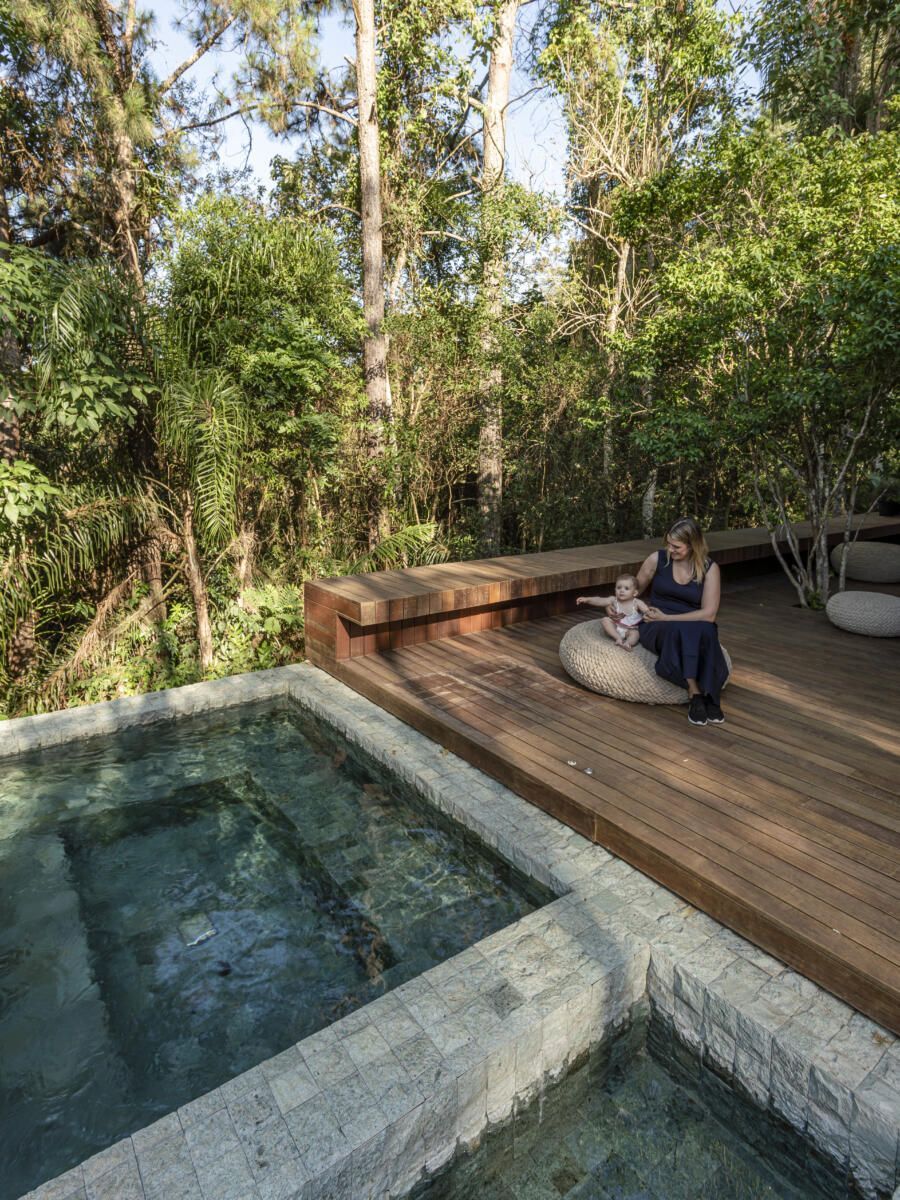 “O casal é original do interior, mas foram para São Paulo e formaram família. Ainda na época do projeto eles não tinham filhos, mas logo que ficou pronto a Luiza nasceu. Eles queriam ter um refúgio em um local com natureza exuberante e história.”
