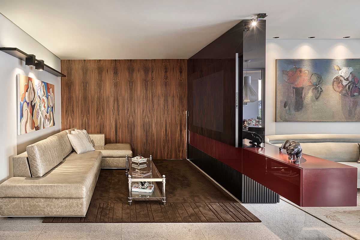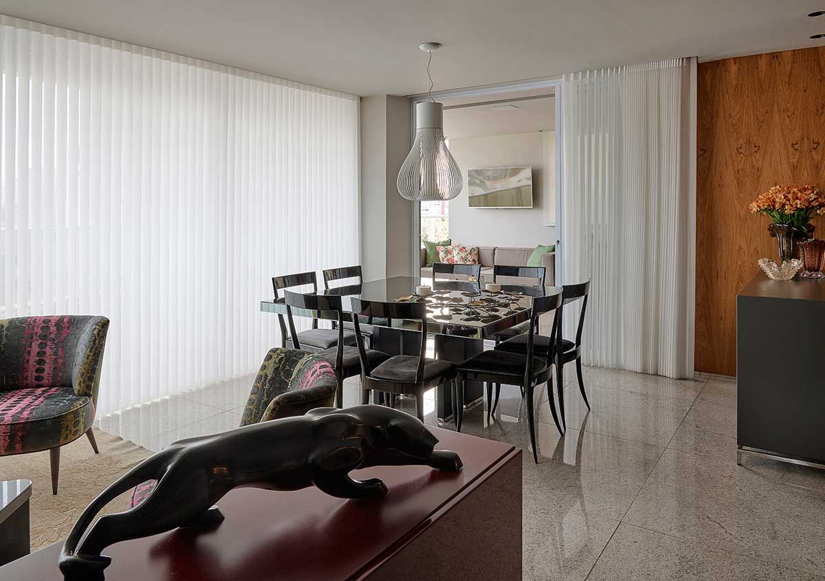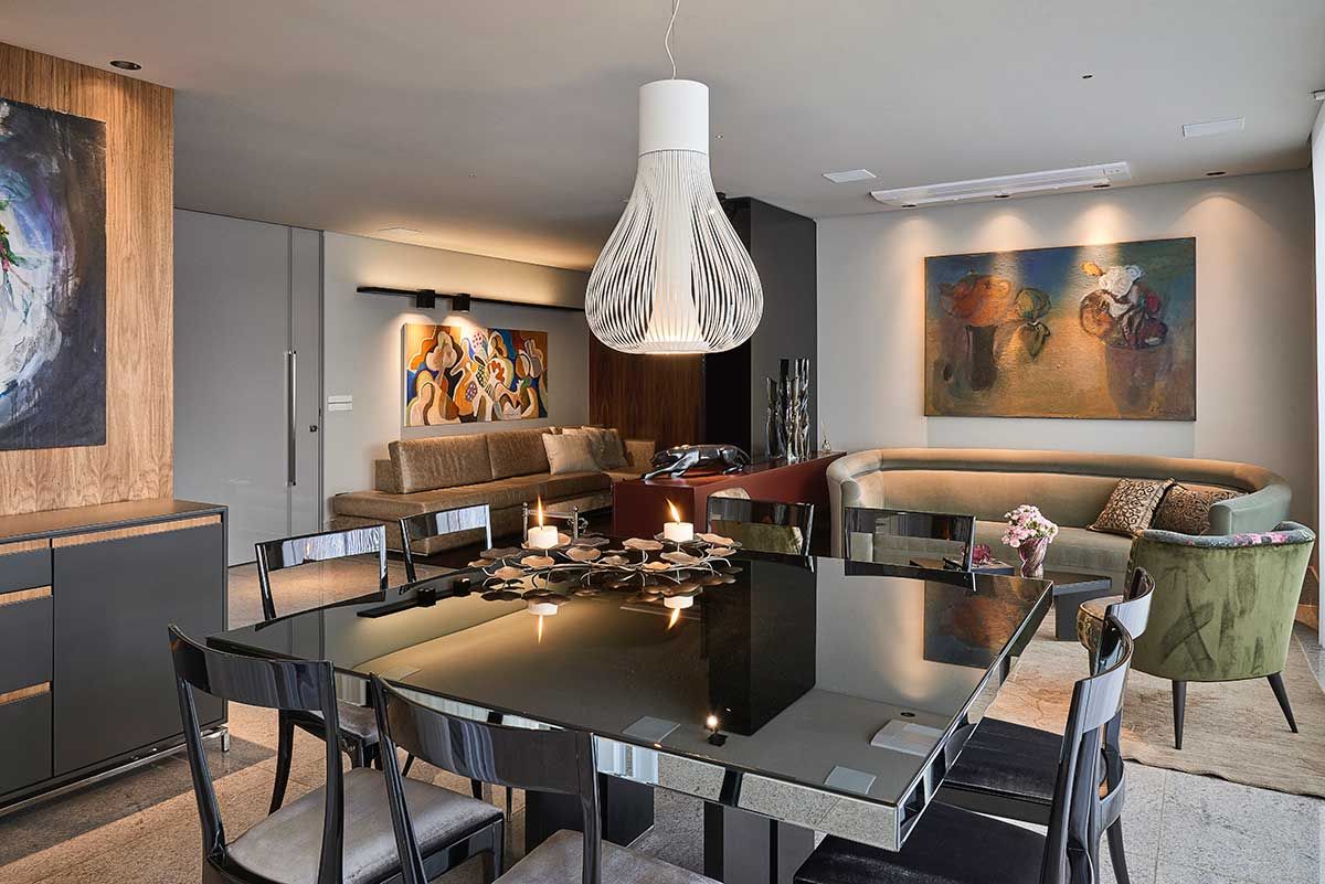 Um casal com dois filhos, um adolescente e um bebê, procurou o escritório Gislene Lopes Arquitetura e Design de Interiores para mudar o apartamento de 192 m², em Belo Horizonte, Minas Gerais.