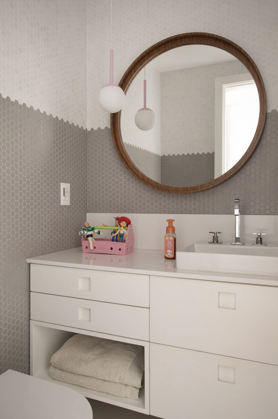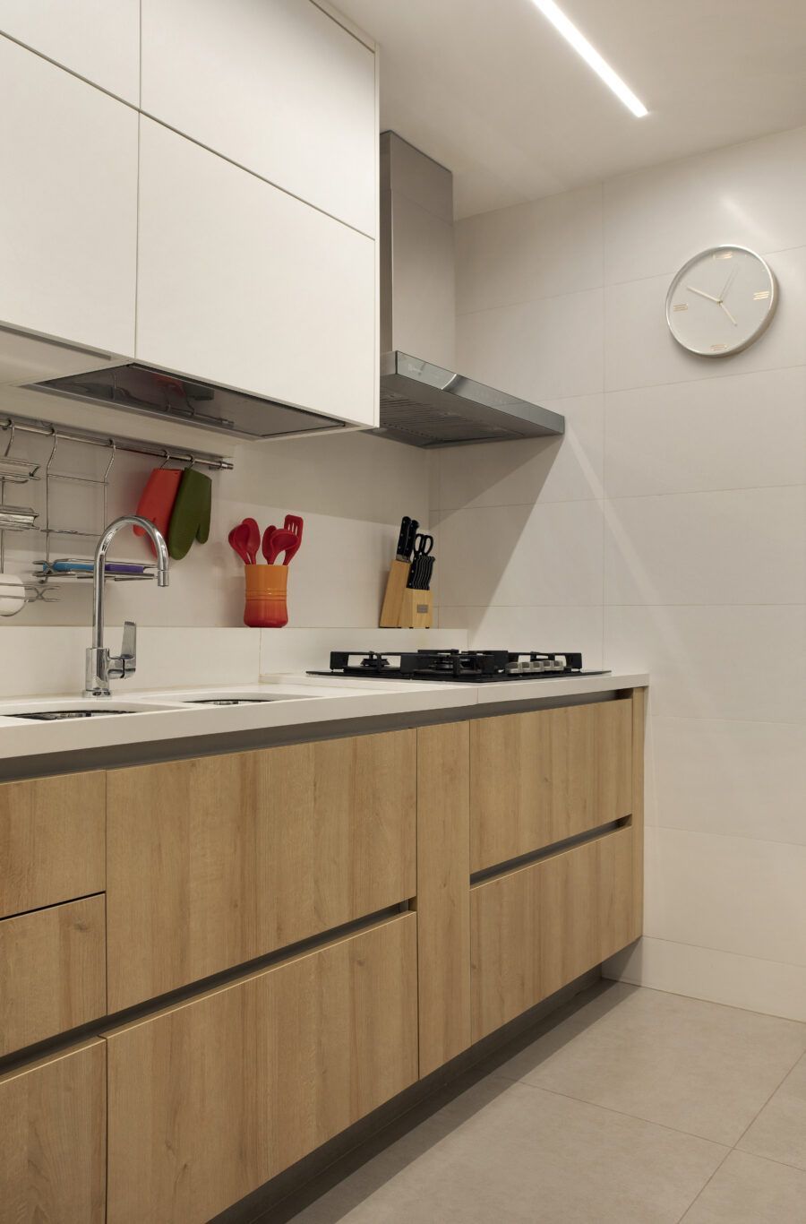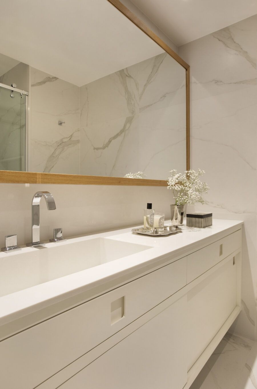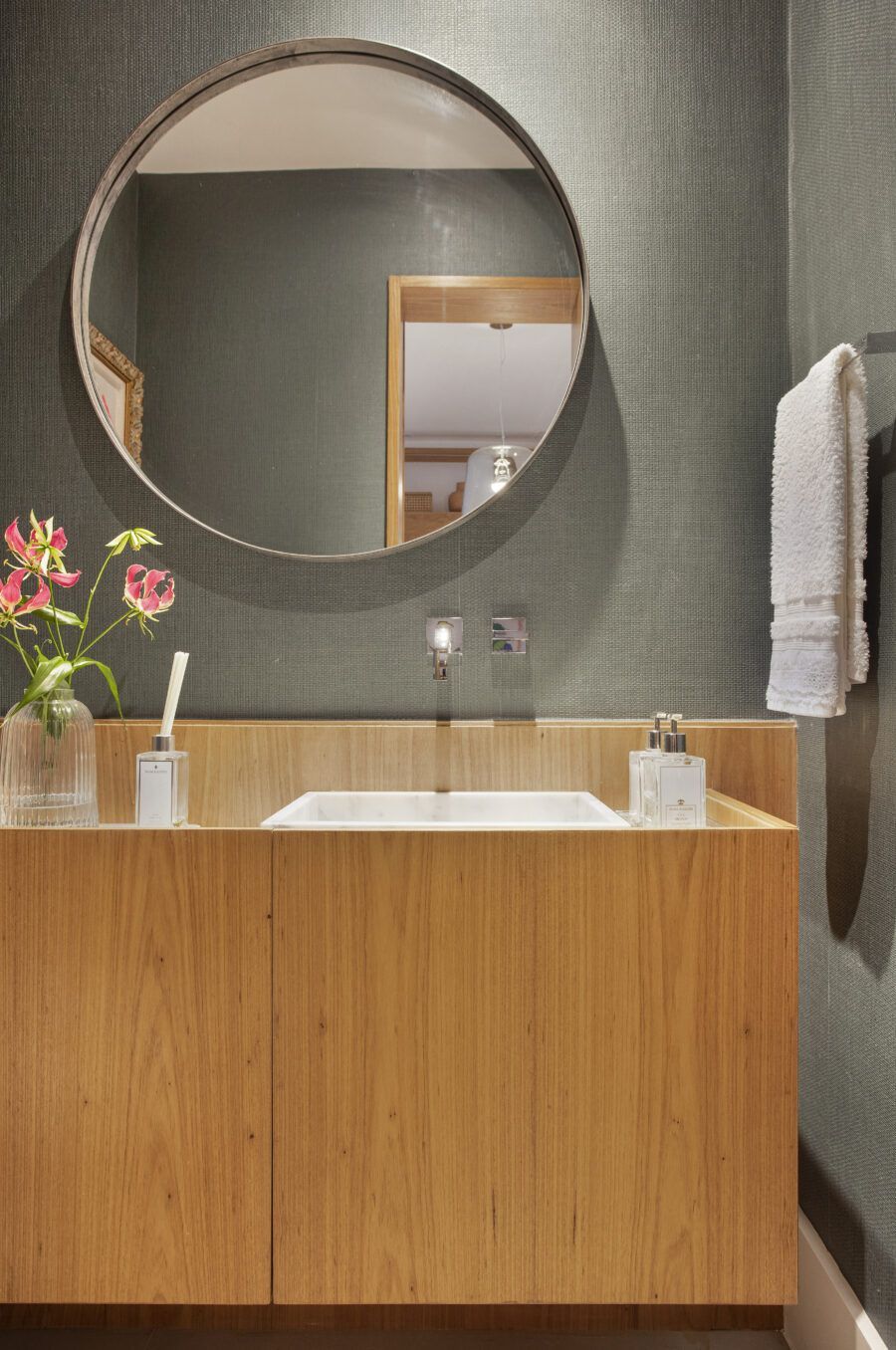 “Nosso maior desafio neste projeto foi ajustar a área existente para criar um lavabo onde havia dois banheiros. Quando o layout estava pronto e aprovado, a demolição encontrou uma viga diagonal entre eles, que nos obrigou a criar um novo estudo de layout. No final, deu tudo certo.”