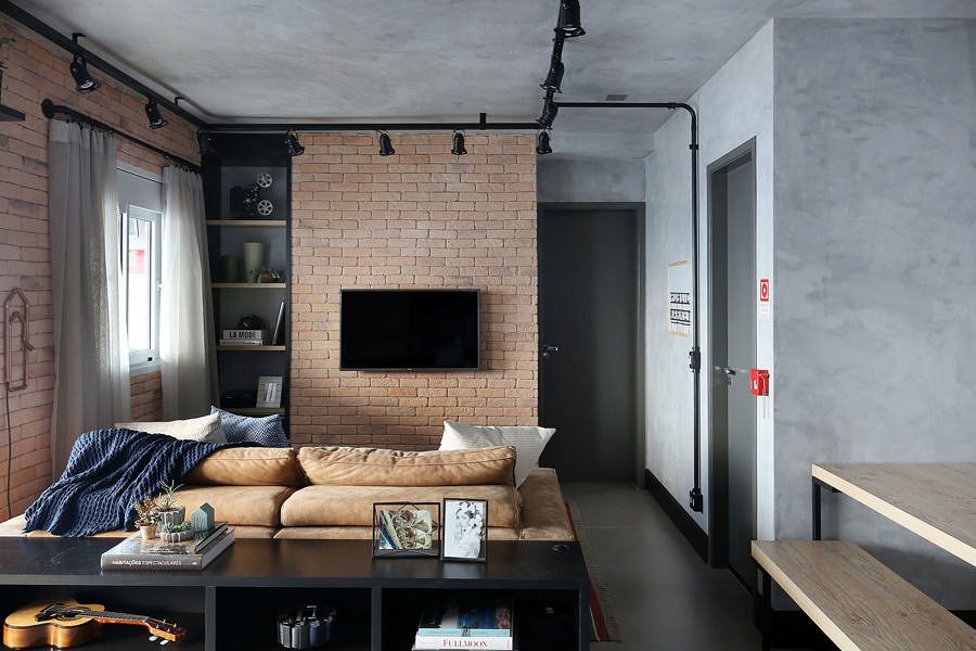 Os clientes procuraram o escritório Bianchi & Lima Arquitetura quando receberam as chaves do apartamento de 63m². Eles queriam reformar e deixar o imóvel com estilo Industrial, tudo em cimento queimado e tubulações e calhas aparentes.