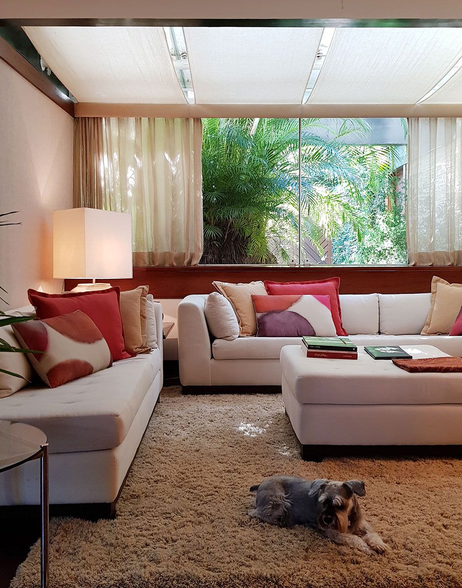 Uma casa construída em 1979 com vista para o mar de São Conrado, com arquitetura de Luiz Eduardo Indio da Costa, foi amor à primeira vista há 20 anos para Miriam D’Aquino Amado e Ariosto Amado, ele fotógrafo e ela designer da almofadaria Paramento, com ateliê no mesmo bairro.