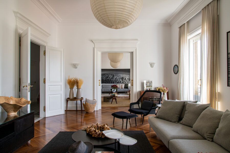 Além disso, os três longos livings do apartamento passaram por uma repaginação, ganhando vida com peças de design assinadas e móveis importados.