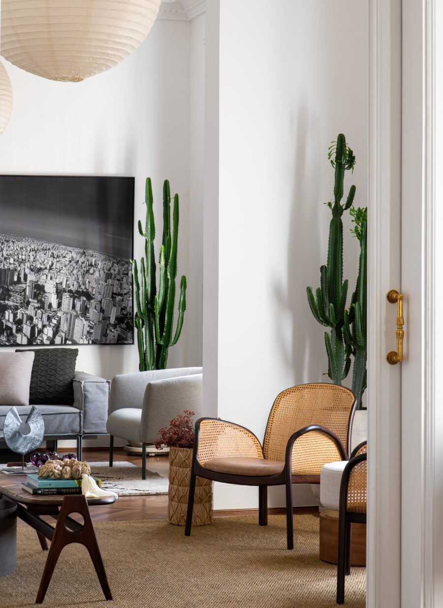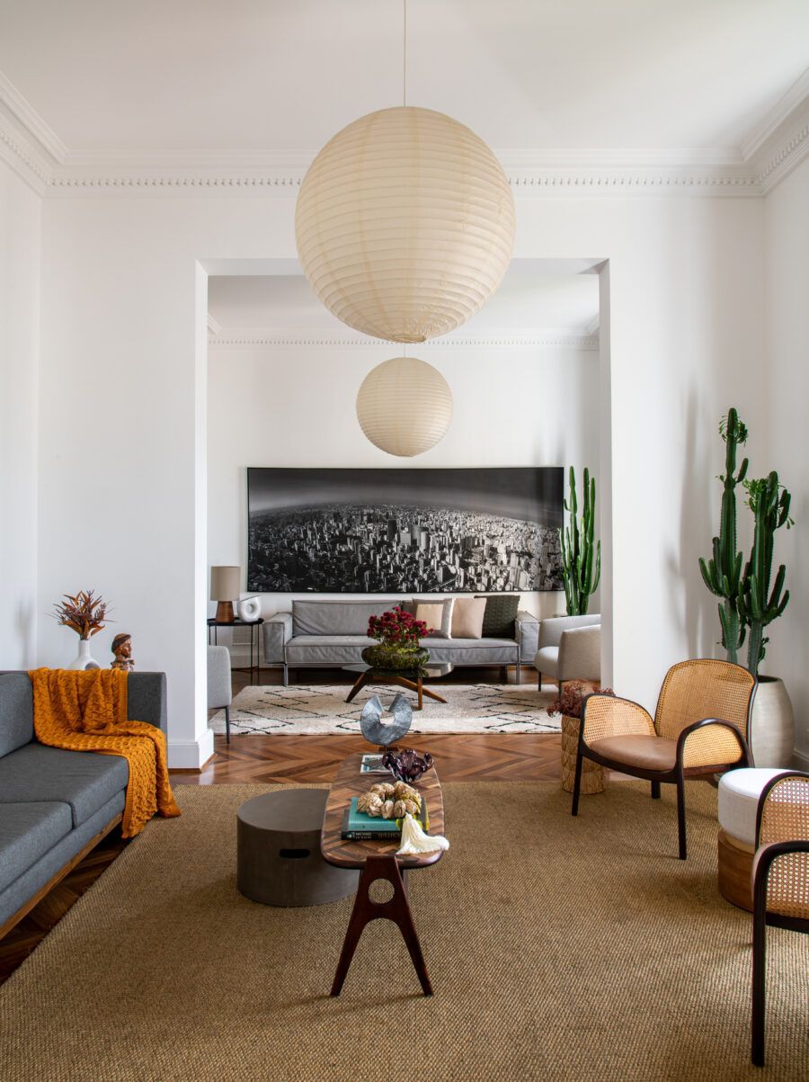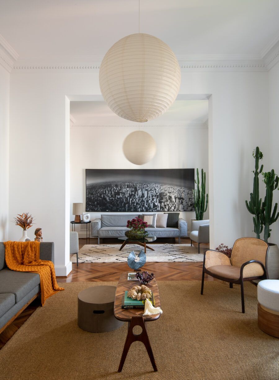 Além disso, os três longos livings do apartamento passaram por uma repaginação, ganhando vida com peças de design assinadas e móveis importados.