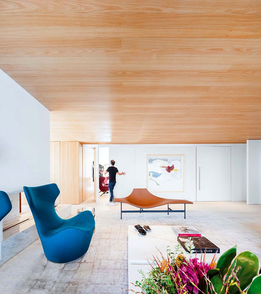 O apartamento de 330m² assinado pela arquiteta Fernanda Marques tem peças de mobiliário coloridas para contrastar com a paleta de tons claros.
