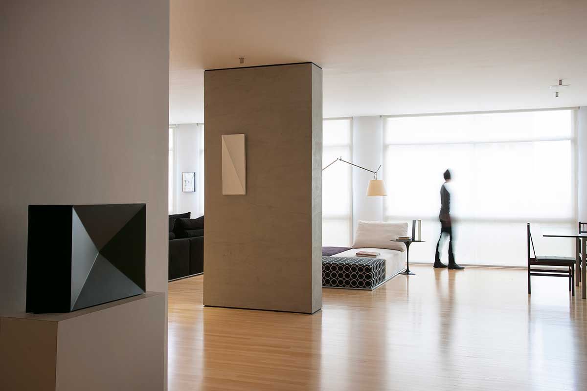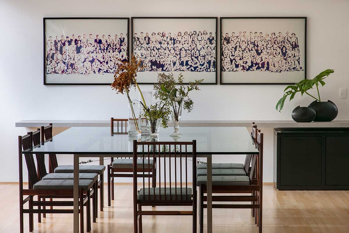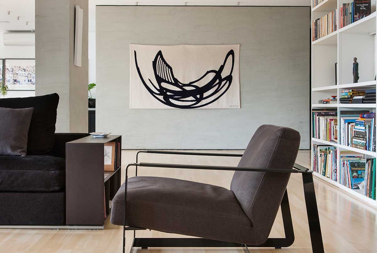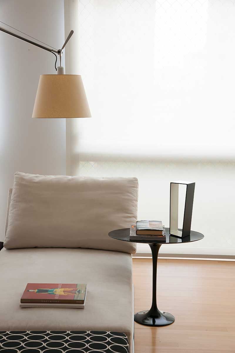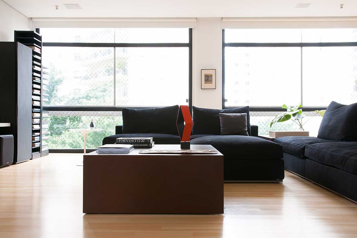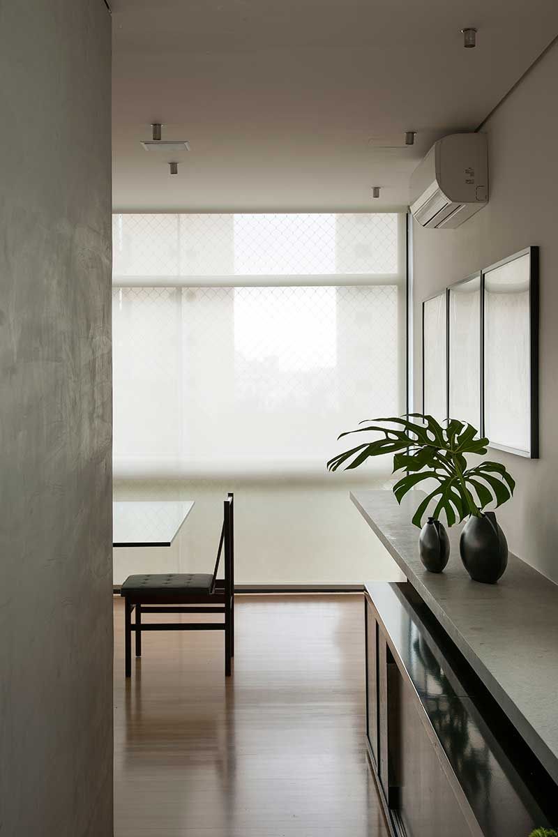O grande desafio foi usar os revestimentos existentes, dando uma nova leitura, e trazer o mobiliário do outro apartamento, criando também uma homogeneidade.