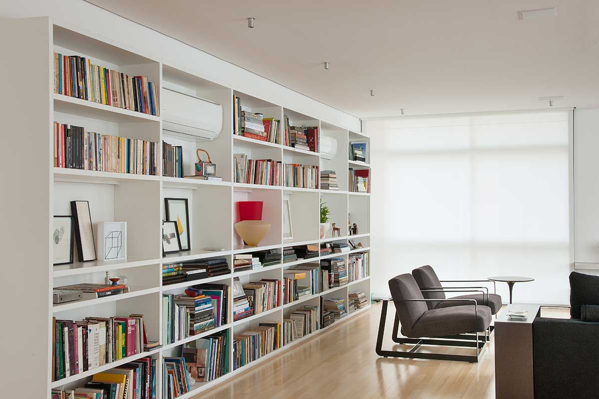 Um casal maduro, profissionais liberais, contratou o escritório Tânia Eustáquio para a reforma do novo lar. O imóvel foi bastante modificado, o living foi inteiramente aberto e criado um espaço usado como adega, que é um hobby do cliente.