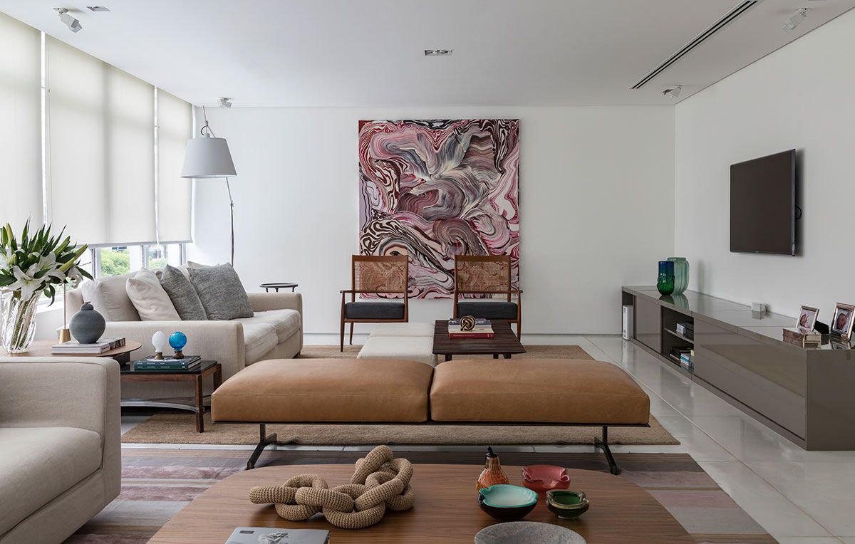 A reforma, que durou sete meses, se baseou em adequar o uso dos móveis existentes e selecionar móveis novos para que a área social ficasse funcional, aconchegante, valorizando cada canto do apartamento que é clean, descontraído, com algumas pitadas de cor.