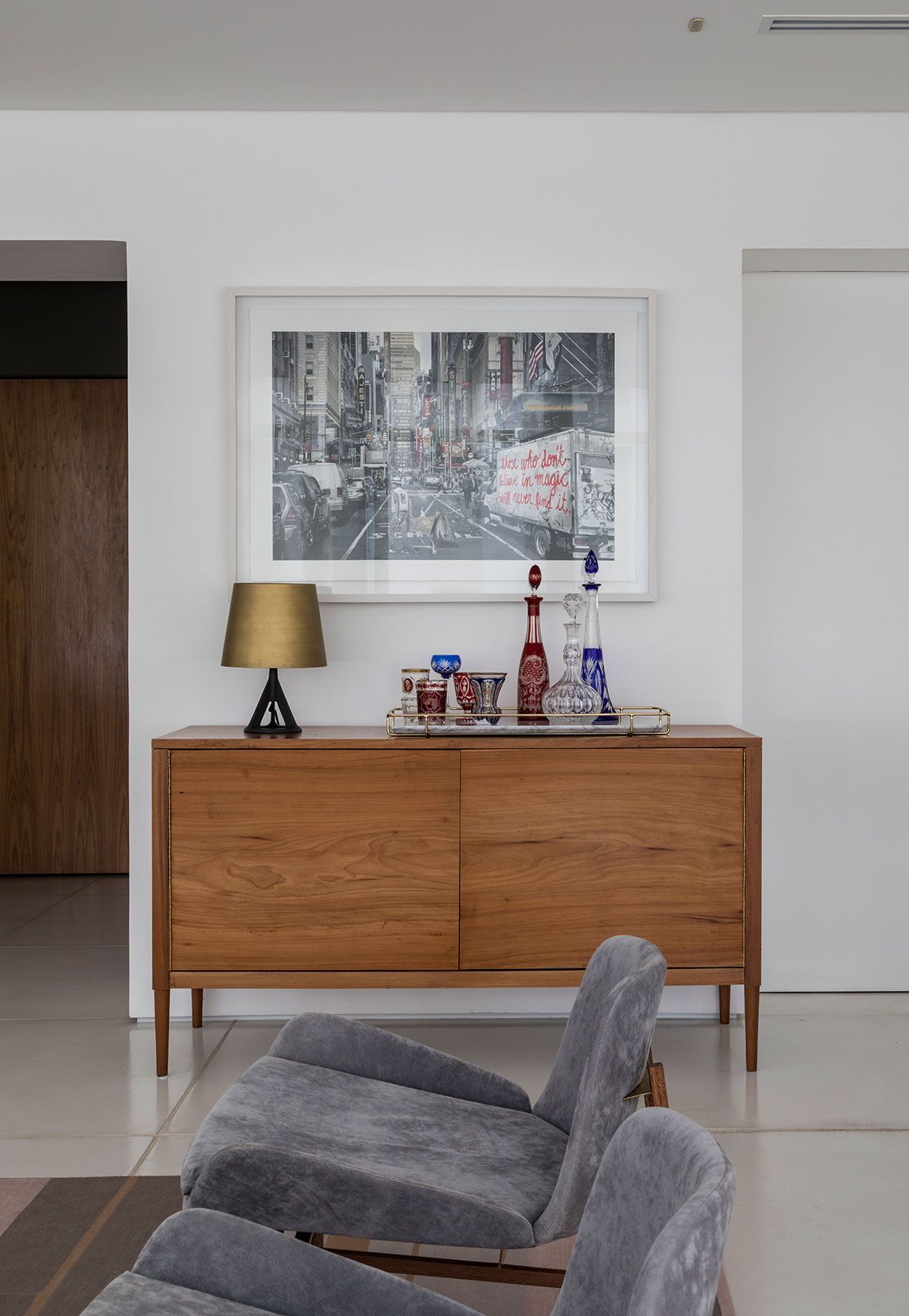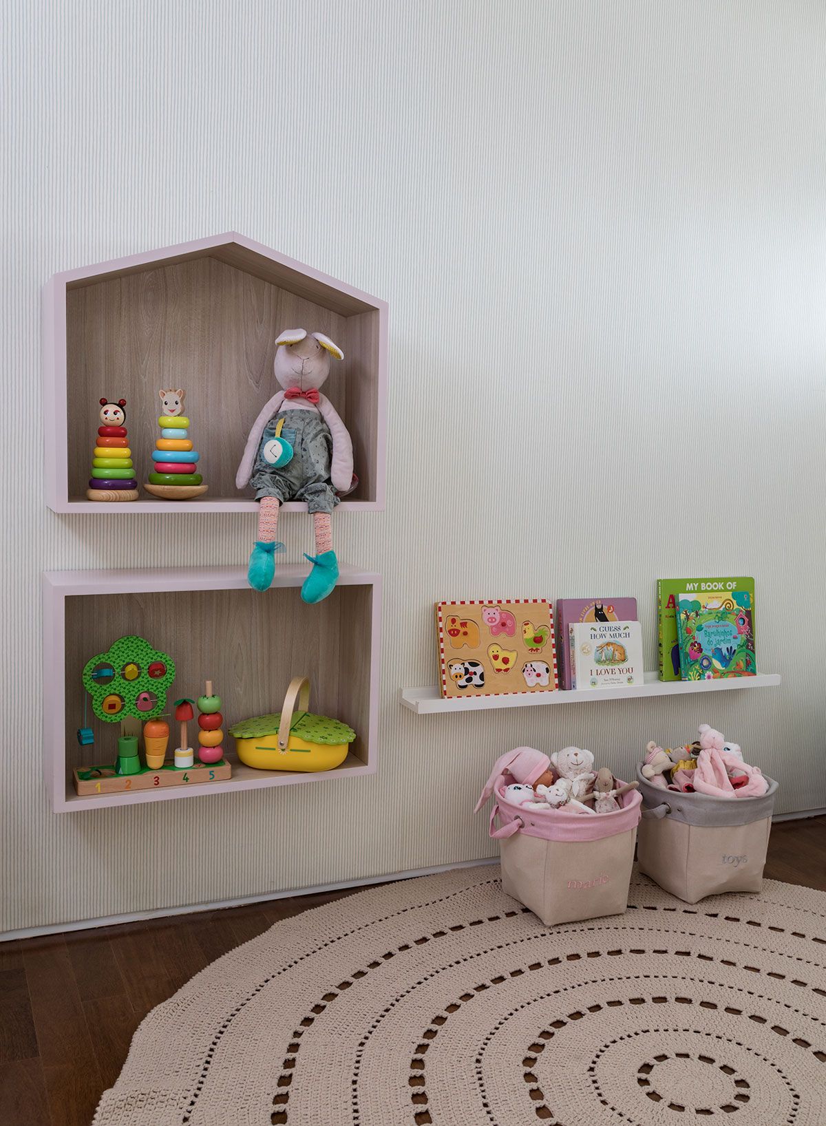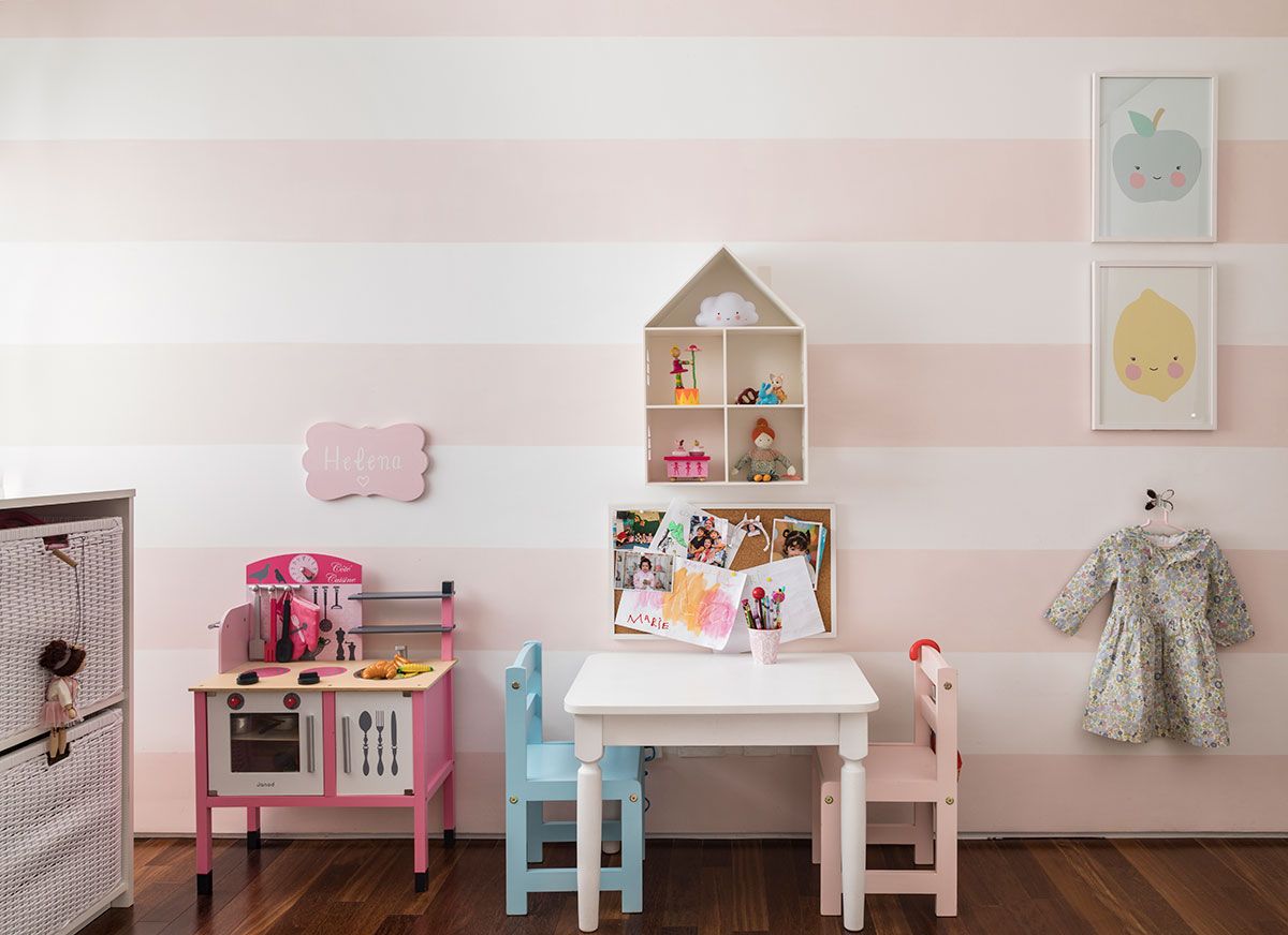 Localizado em São Paulo, no bairro dos Jardins, o apartamento de 220m² é habitado por um jovem casal descontraído e seus três filhos. A família precisaria de um novo quarto para o terceiro filho, que estava chegando, sendo assim, procuraram a Marcela Pepe.