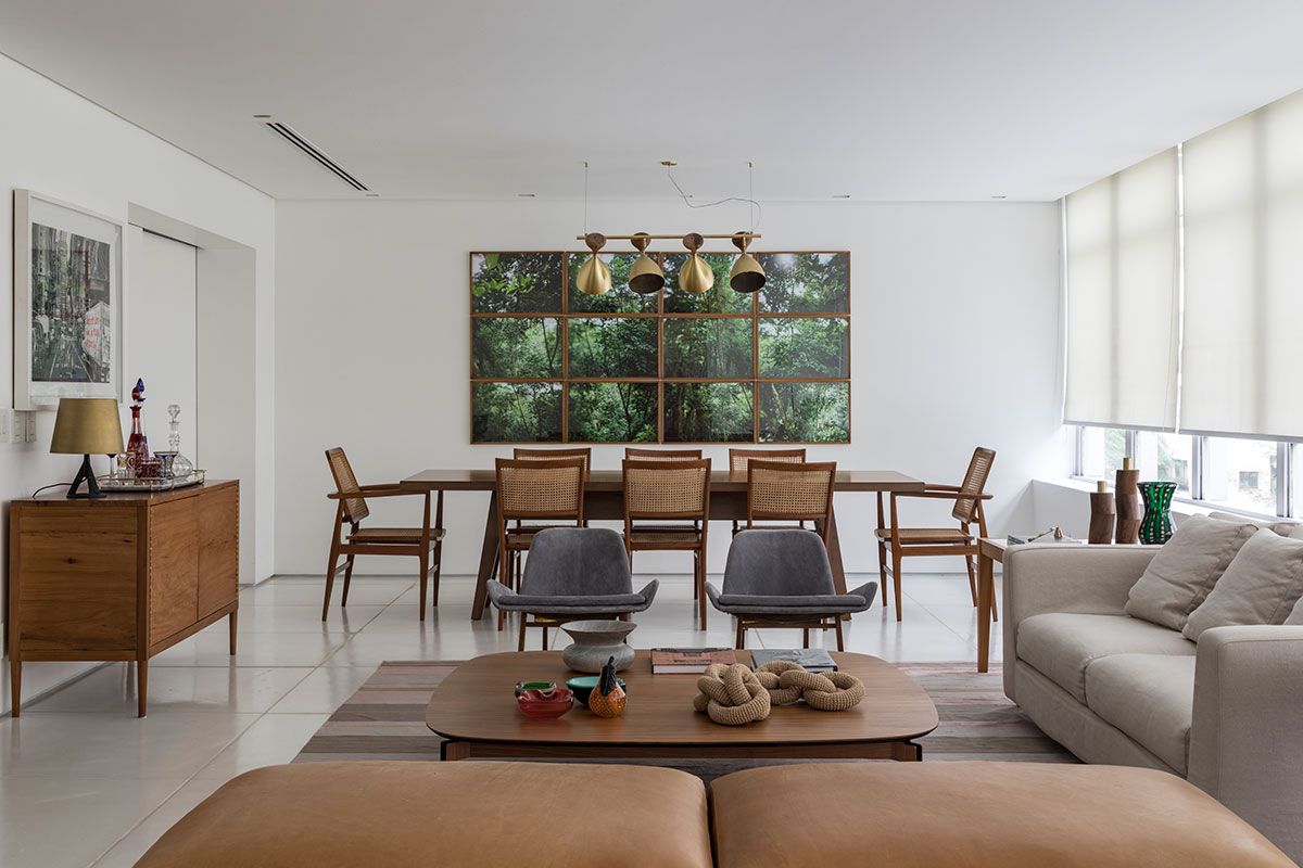 A reforma, que durou sete meses, se baseou em adequar o uso dos móveis existentes e selecionar móveis novos para que a área social ficasse funcional, aconchegante, valorizando cada canto do apartamento que é clean, descontraído, com algumas pitadas de cor.